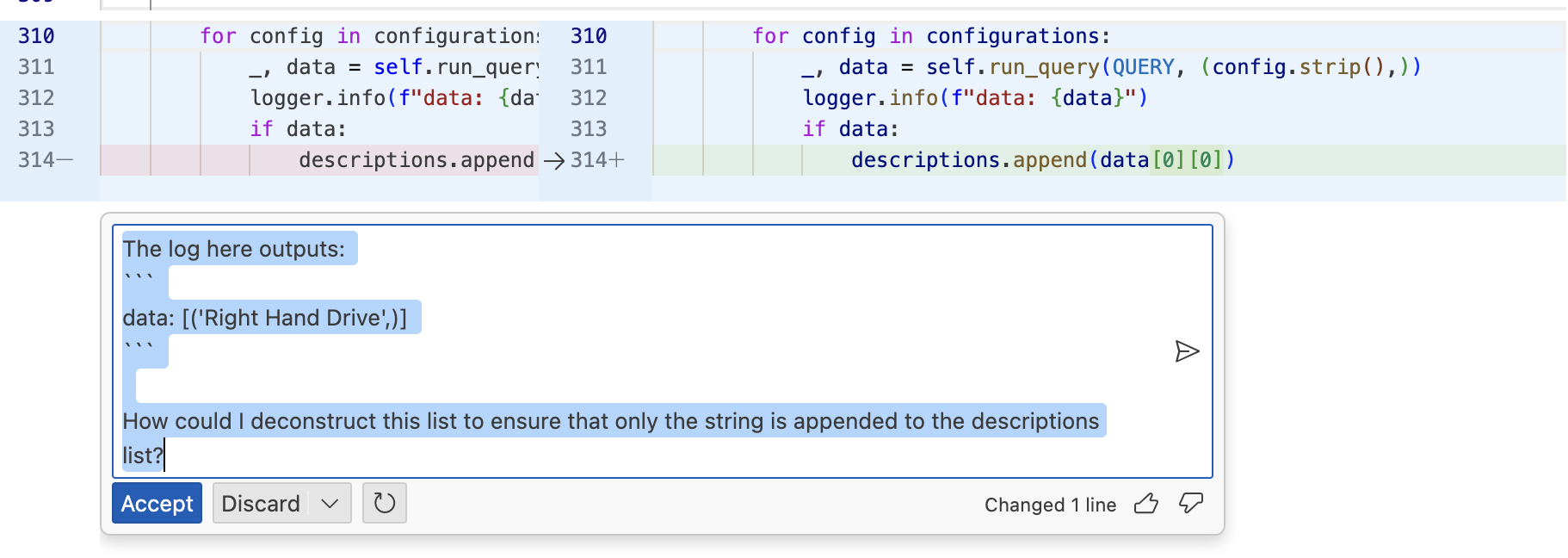 - It will then give you a diff to show the changes that it suggests and you can accept or reject it right there in the file 🎉