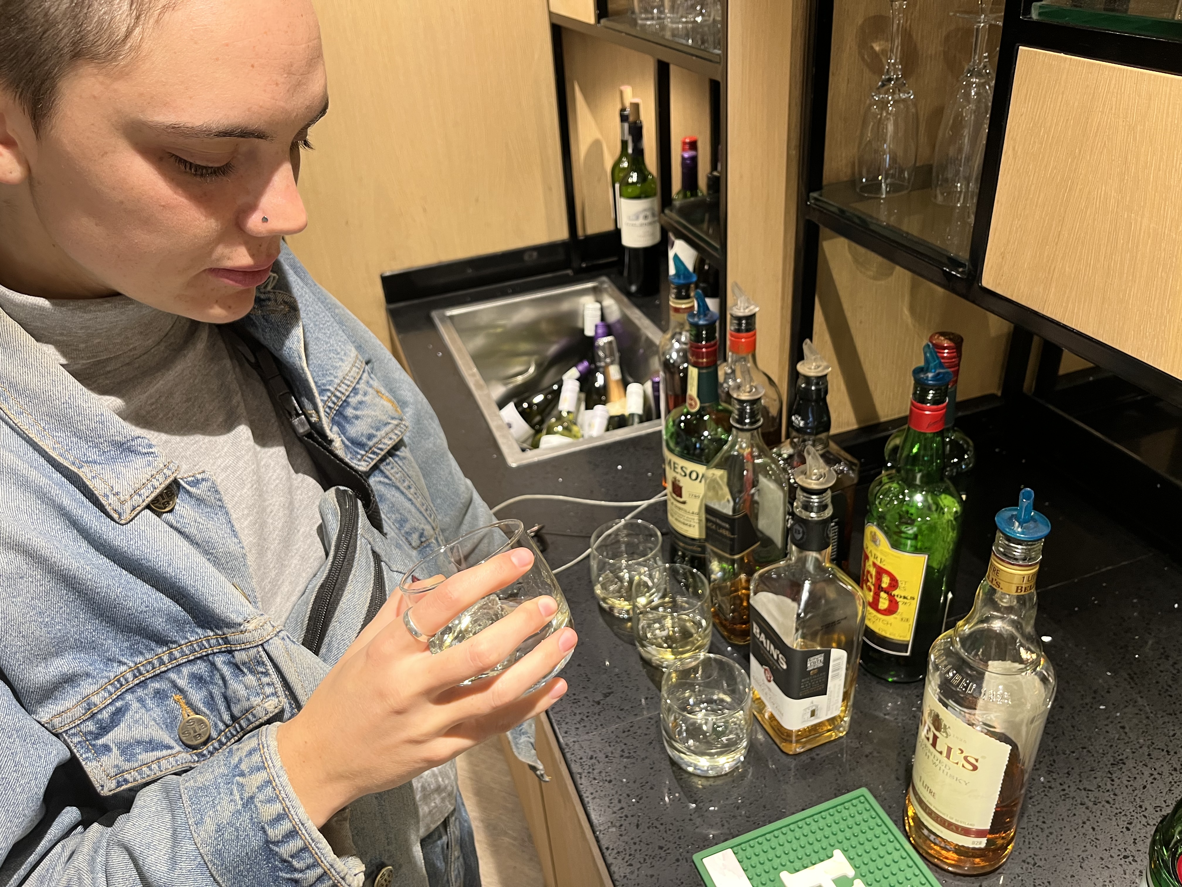 I make the most of my R400 entrance by eating everything that I see. I take many things and stash them in the bag for later. We eat dinner watching university netball on the TV. The bar is open and unattended so we decide to do a whiskey tasting with their entire range. Bells is initially the best - but upon revisiting lacks the beautiful smoky flavour that it had on the first sip.