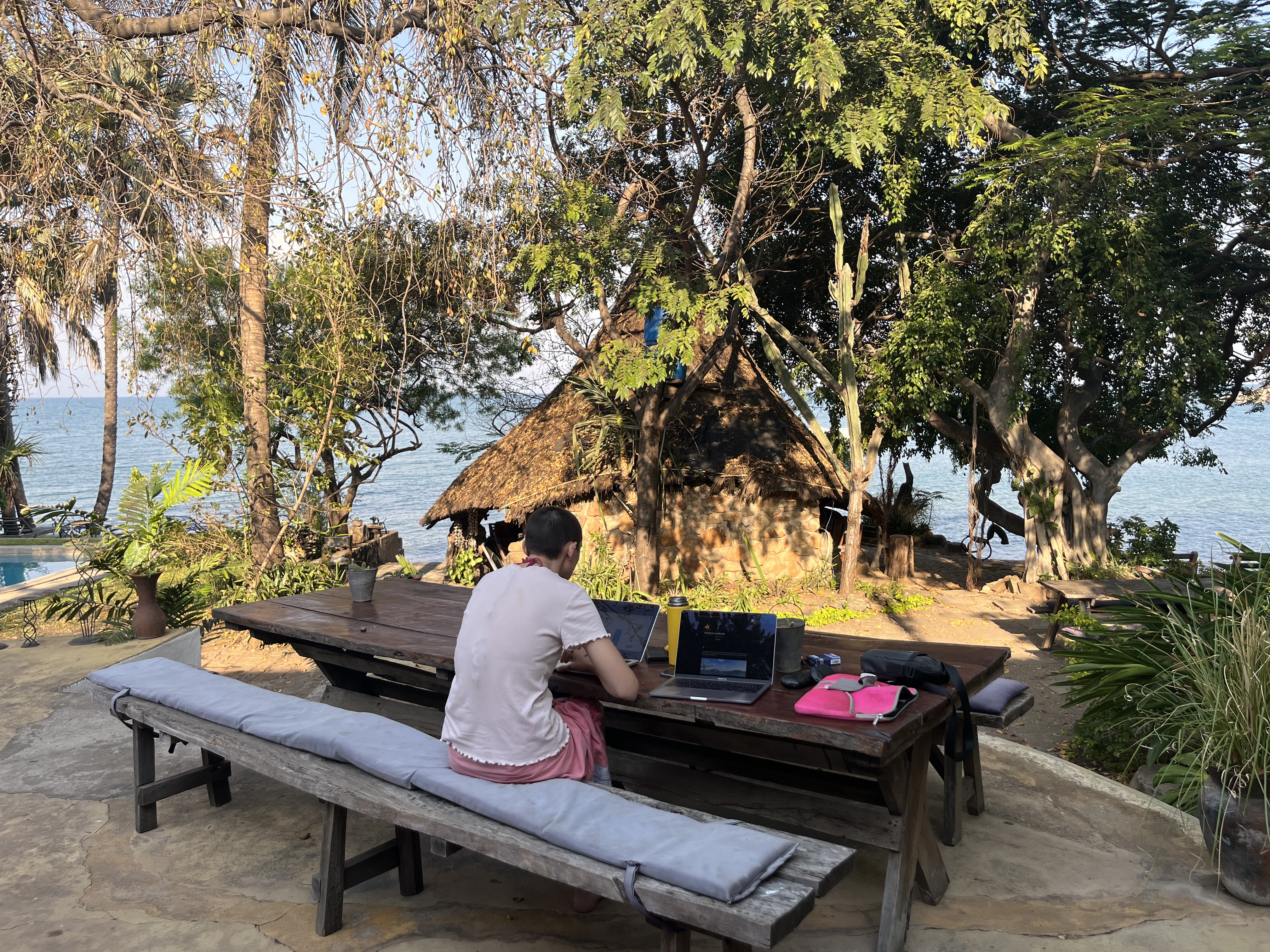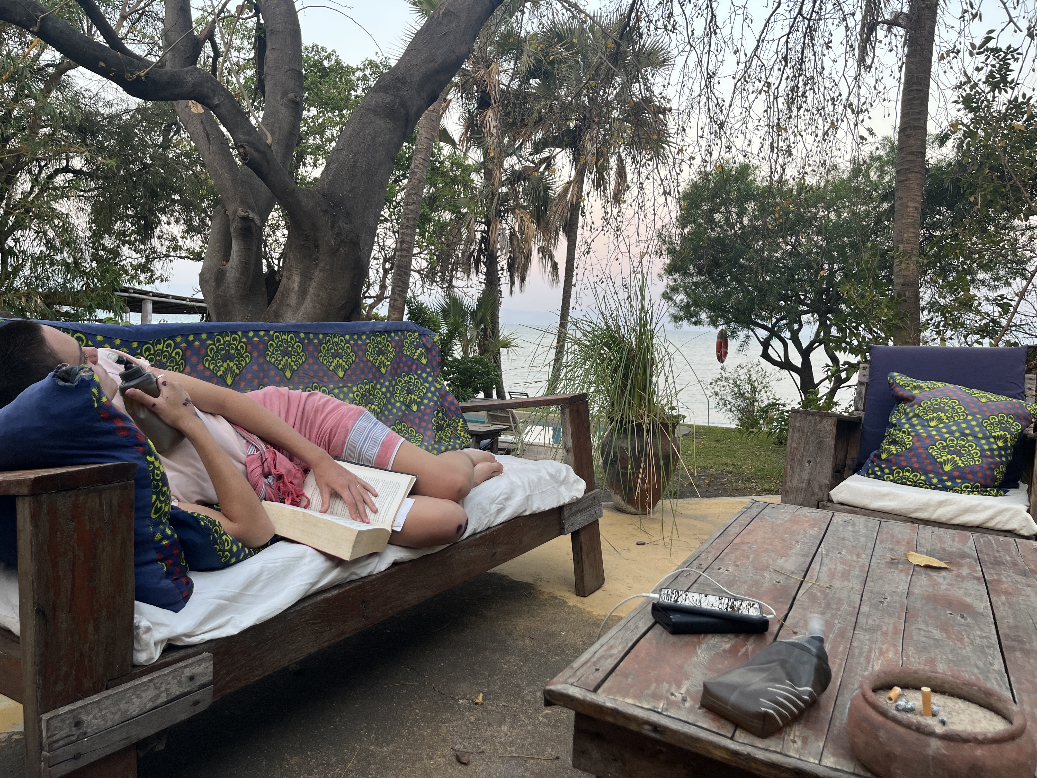 Back on the bike - heading down towards Mangochi. It’s a short drive to Nanchengwa Lodge that where we will be staying for a few days. A nice tar road takes us to a place that Google Maps is unable to. We arrive on the lake at a beautiful little lodge with old Victorian style buildings. We immediately have a swim and Jordan gets a bit of work done.