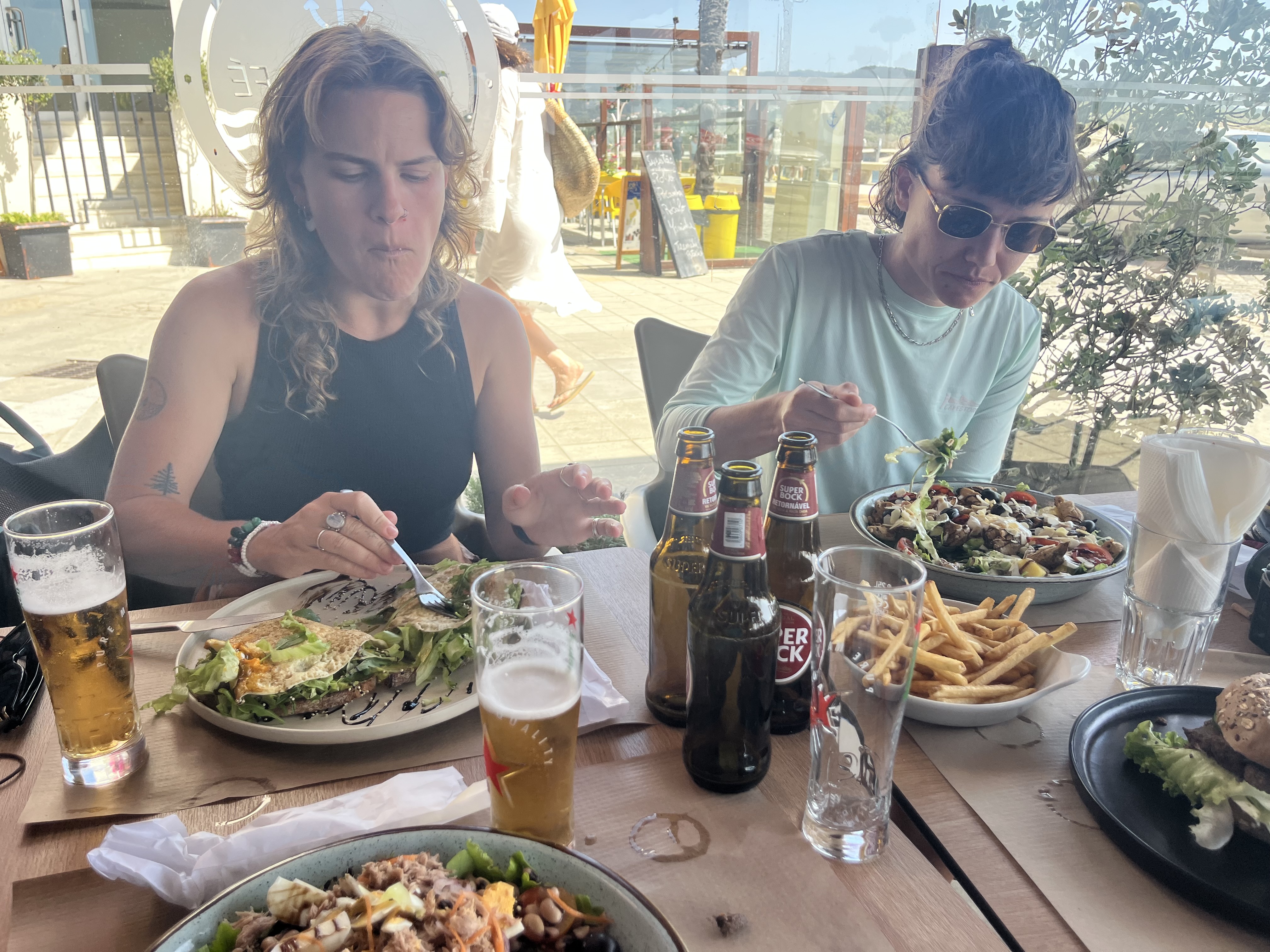 Finally we make it to the Albergue that Mattea has booked us in. It’s modern and clean. We have a shower and unpack our things. Then walk around the corner to join Luke and Mattea for a beer - it’s their last night, and Mattea says “it was a dangerous night to be a Super Bock”.