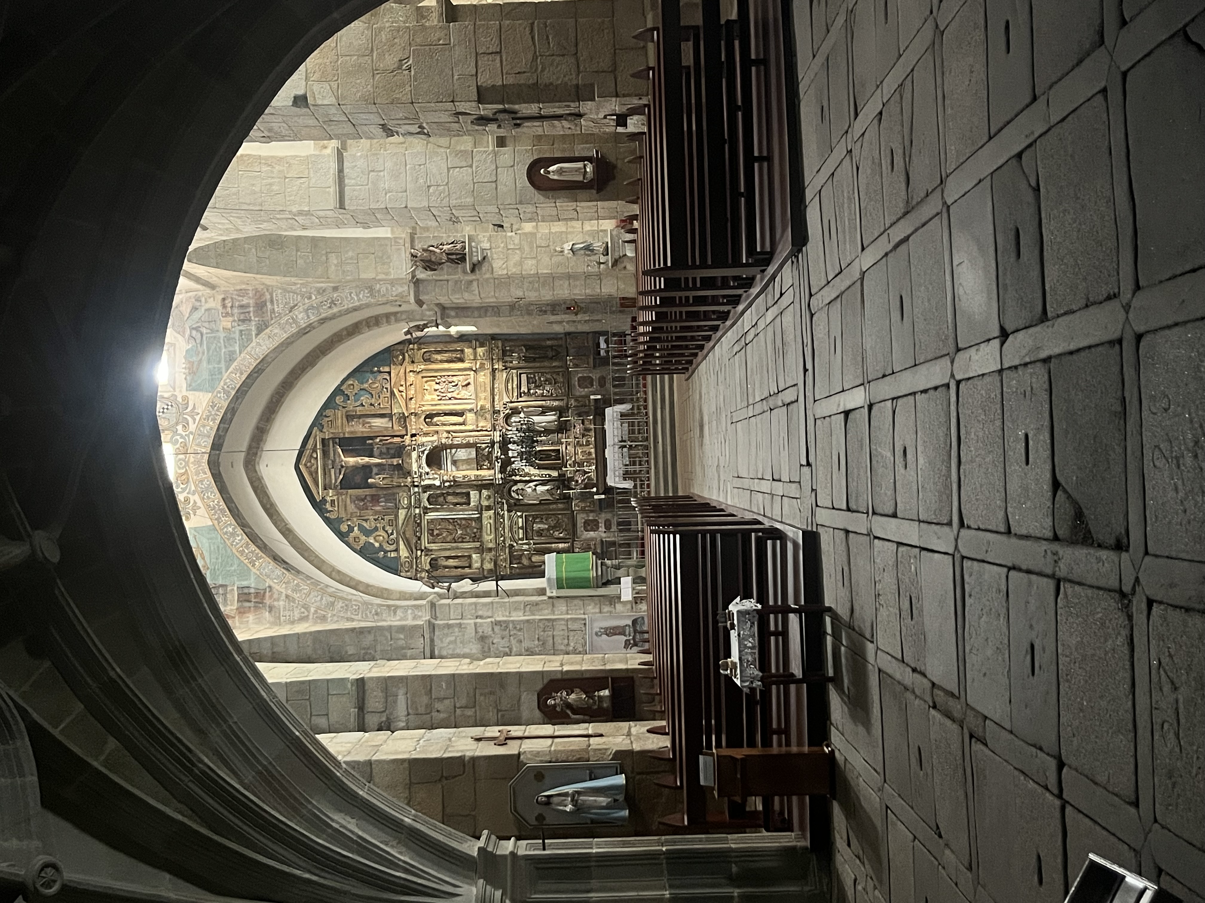 We have breakfast at the hotel and then wander down to the monetary to look around. It turns out itās rather more ominous than it looks - having been used as a fort to fight off attackers, then being sold and used as a concentration camp a few hundred years ago. One cannot go in, but we peek through the door - arched roofs look good even dripping in blood.