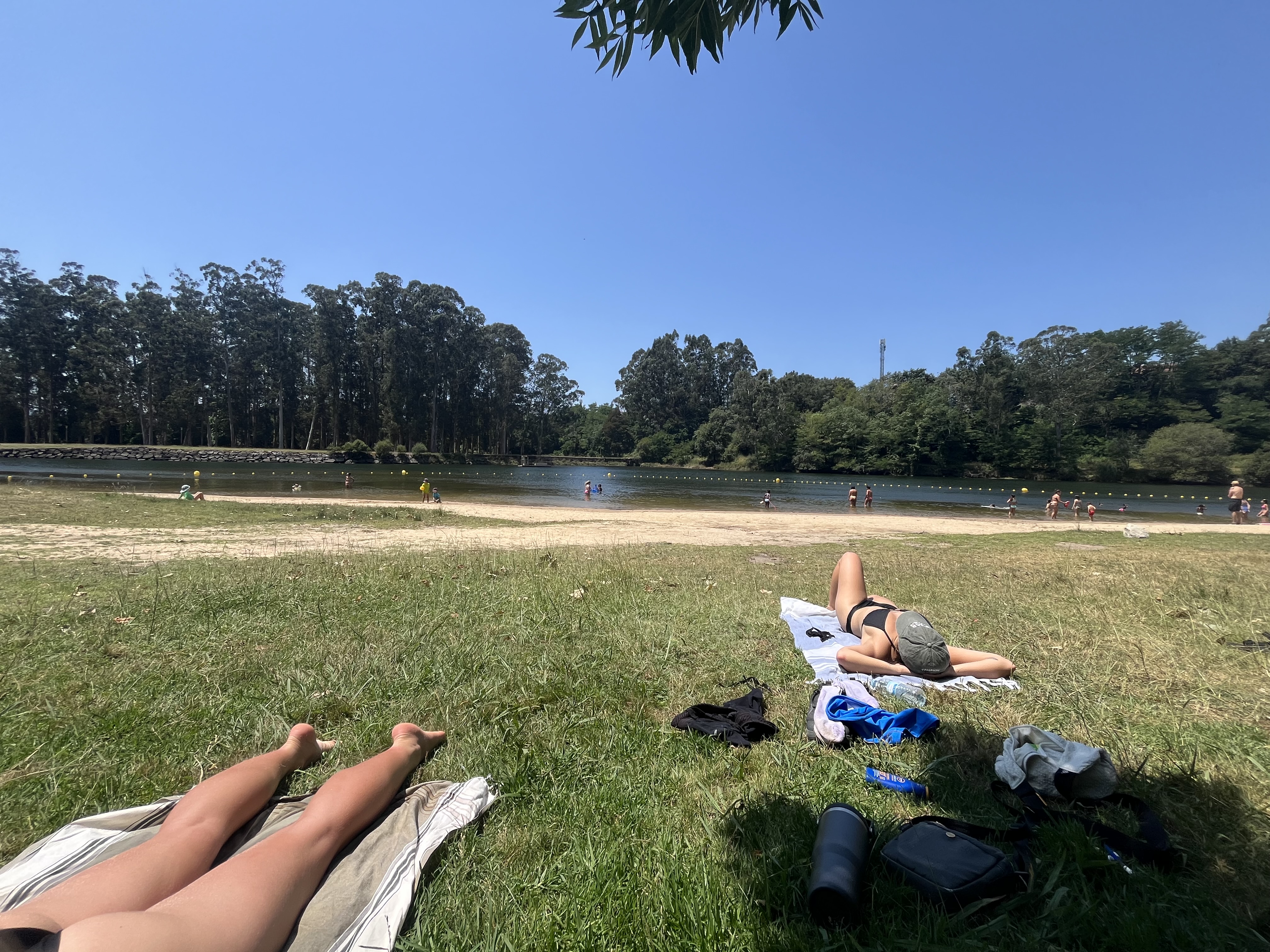 Courtnay arrives in the morning and we make some scrambled eggs along with a catchup. Then head off for a walk into town, buy a speedo (wear sunglasses around my pasty thighs) and look around. We stumble across a book festival where some young children are doing a reading competition - or so we think. We get a free churro with our coffee and head to the swimming hole (literally what people call it). Which is just a small beach next to the river with trees and grass.