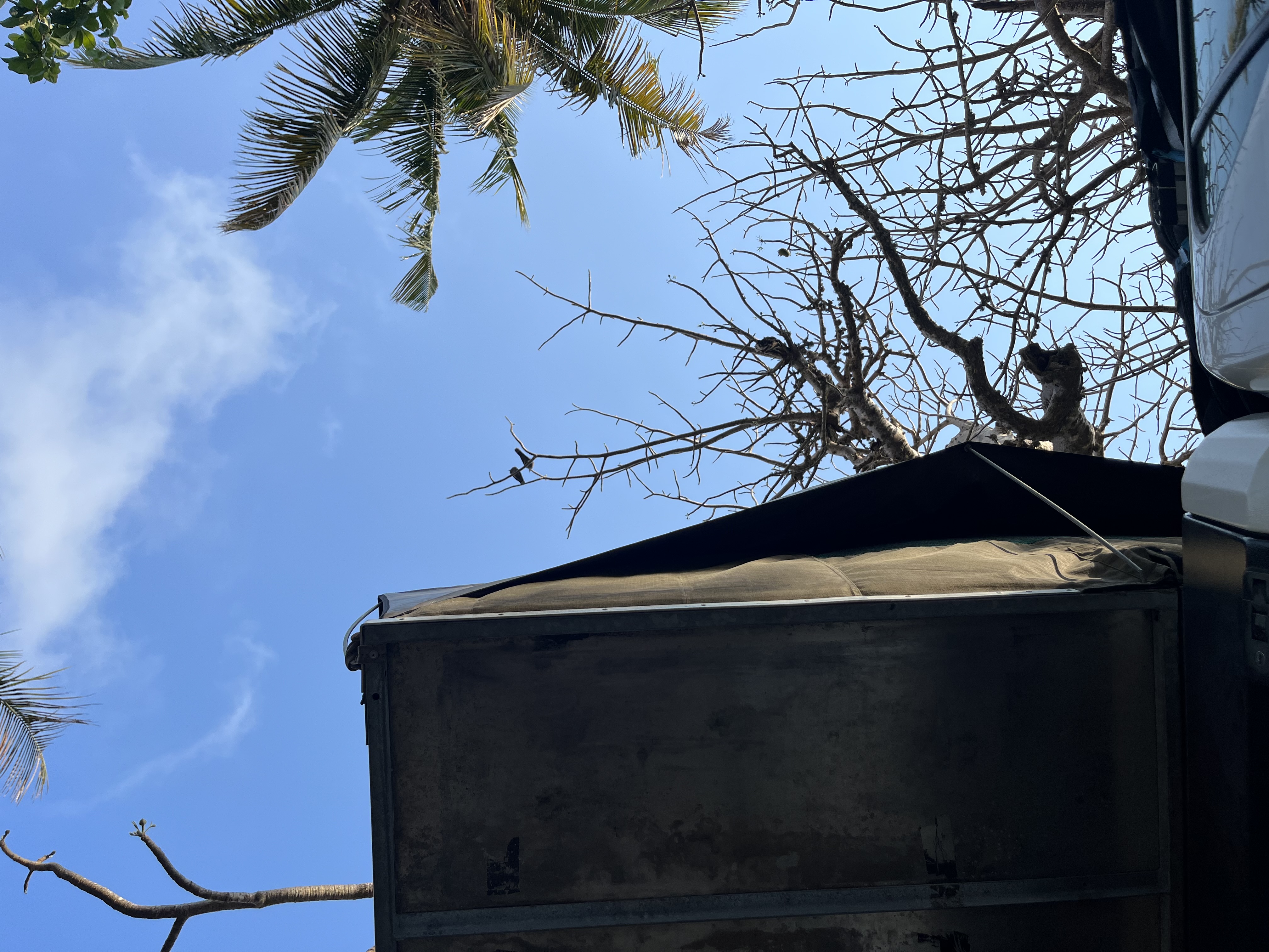 We take a left and the road goes sandy. Palm trees surround us, small villages and cows with long leather straps around their necks. Hungry and slightly hungover we look for a quiet spot to stop for lunch. Expectations always make the worst travel companions and we forge on looking for this idyllic spot. The small houses are incredibly beautiful, making corrugated iron look elegant and tasteful. The lung spot actually arrives, we park in the shade and made a pretty fantastic sandwich.