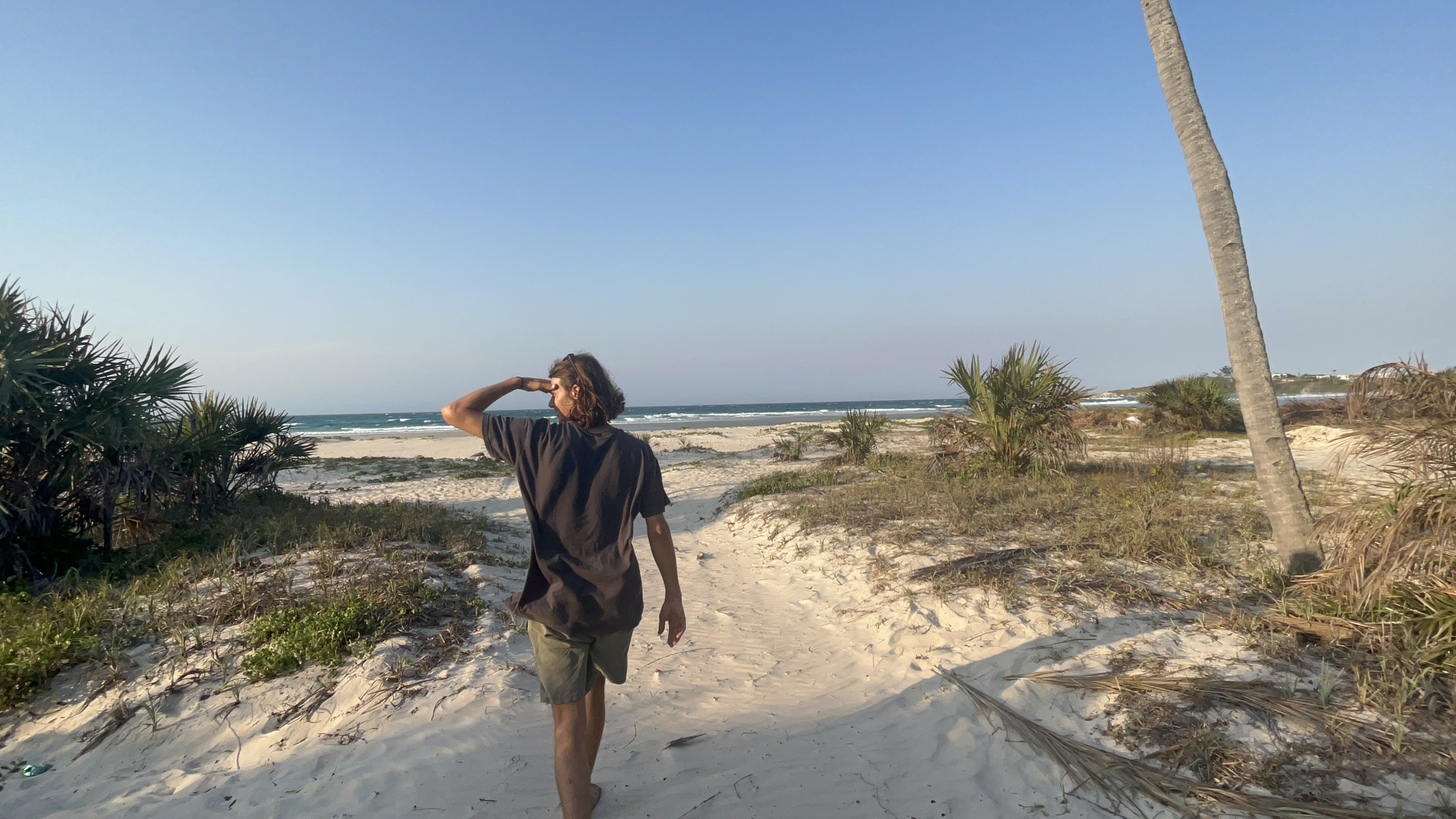 The map shows that the ocean is just in front of us. And as Africa would have it the owner of the place that we’re staying is right there on the road, he holds on to the side of the car and directs us to a spot right on the beach that is a thing of beauty. After shimmying the car into a level position we take stock of what is around us: tropical beach, palm trees, loud ocean and a warmth that envelops everything.