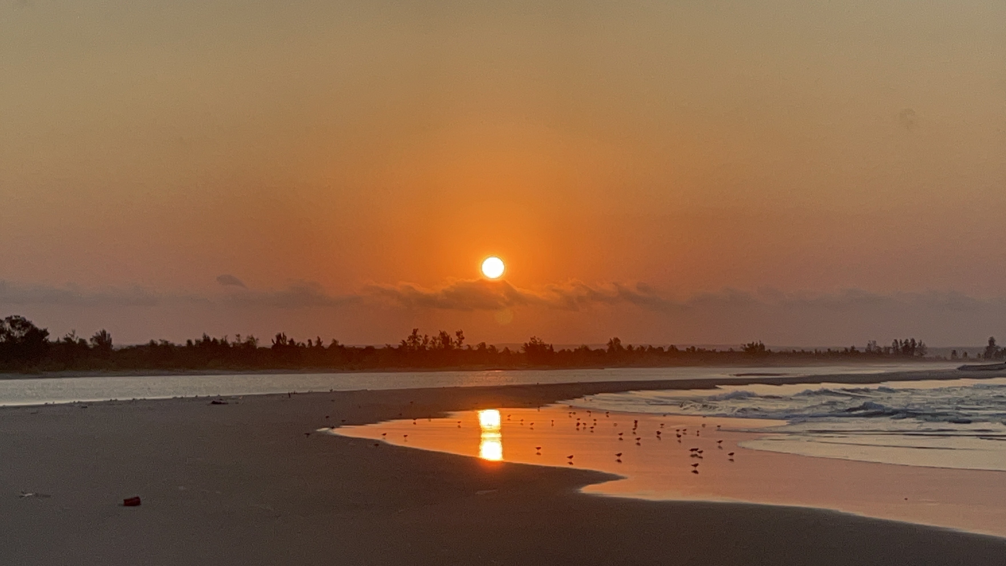 Crabs scuttle down the beach ahead of us. Seemingly playing in the waves. As the most evolved physical form of life, it appears that they have an abundance of energy to play games; go crabs. We chase a couple of them around to add to their fun.