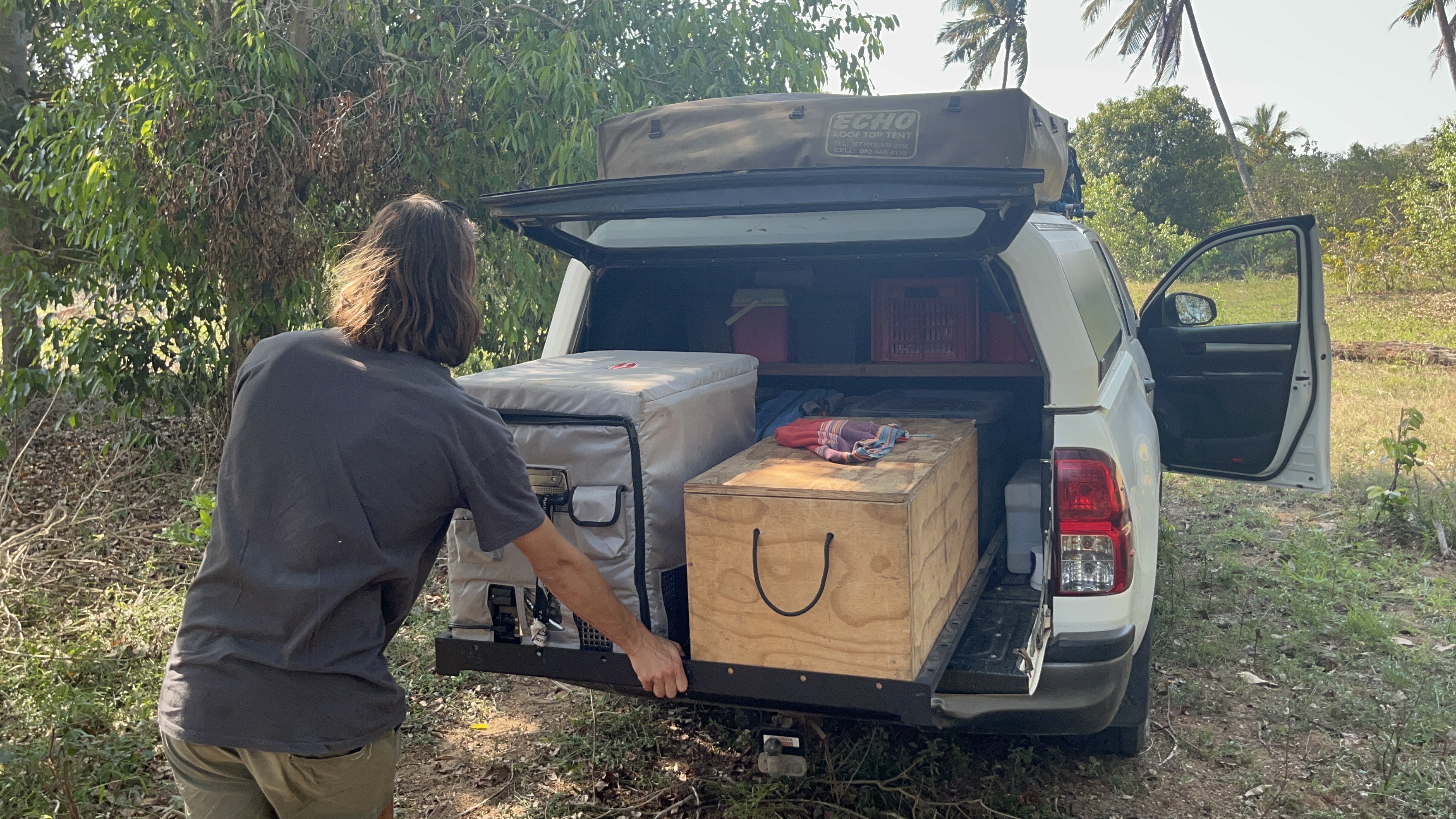 Tents are setup. Dinner is prepared. We’re getting the hang of this whole overlanding thing. I take a moment to repack the fridge after completely devastating any organisation that once was. I do the same with the food box.
