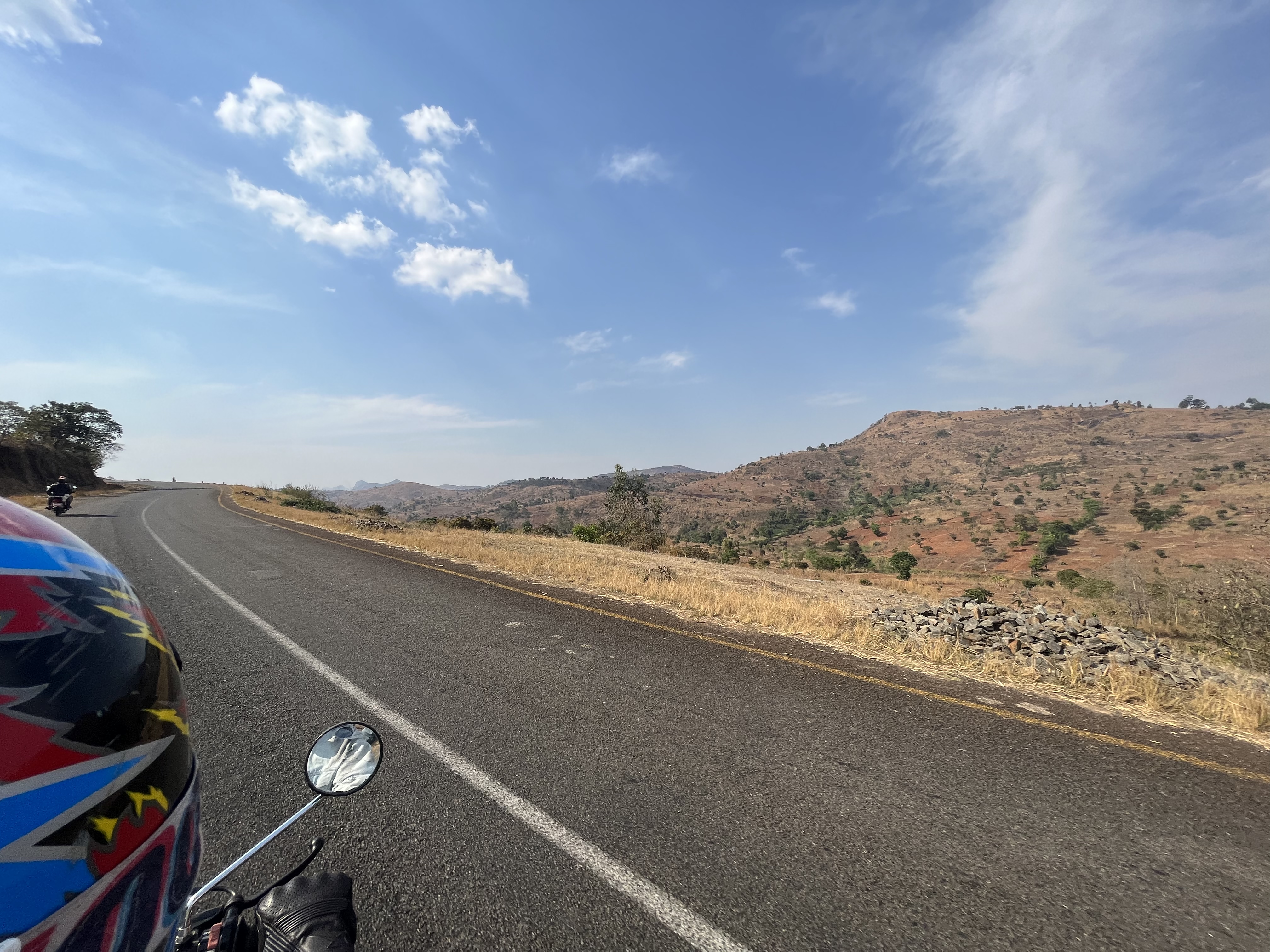 The bike was a Yamaha DT175. A small and reliable two stroke machine that has been subjected to extreme conditions in Africa since the early eighties. Contrary to the size of the bike, it managed to carry both myself, Jordan and our two bags with relative ease; the only compromise being that 60km/h was our top speed.
