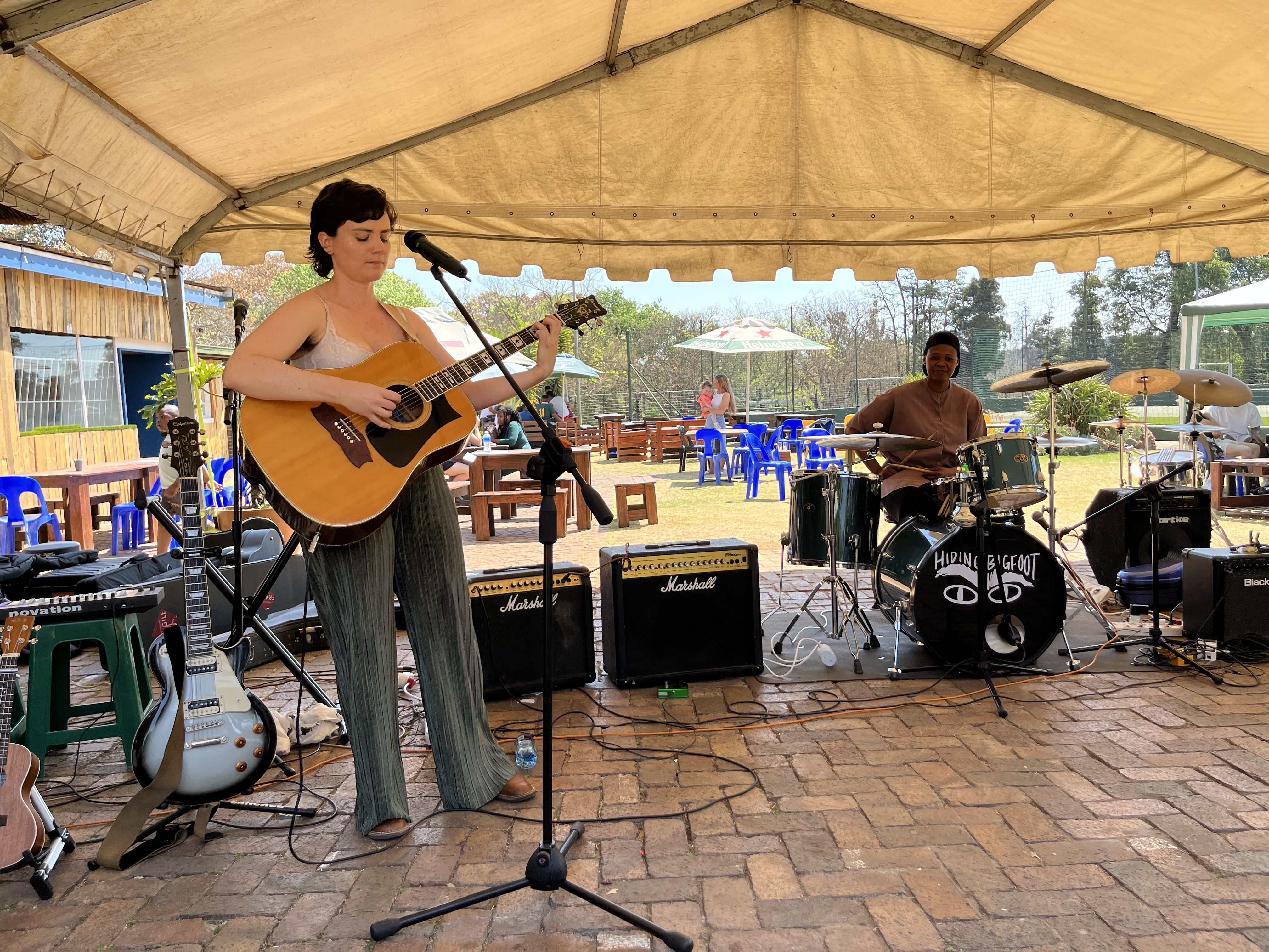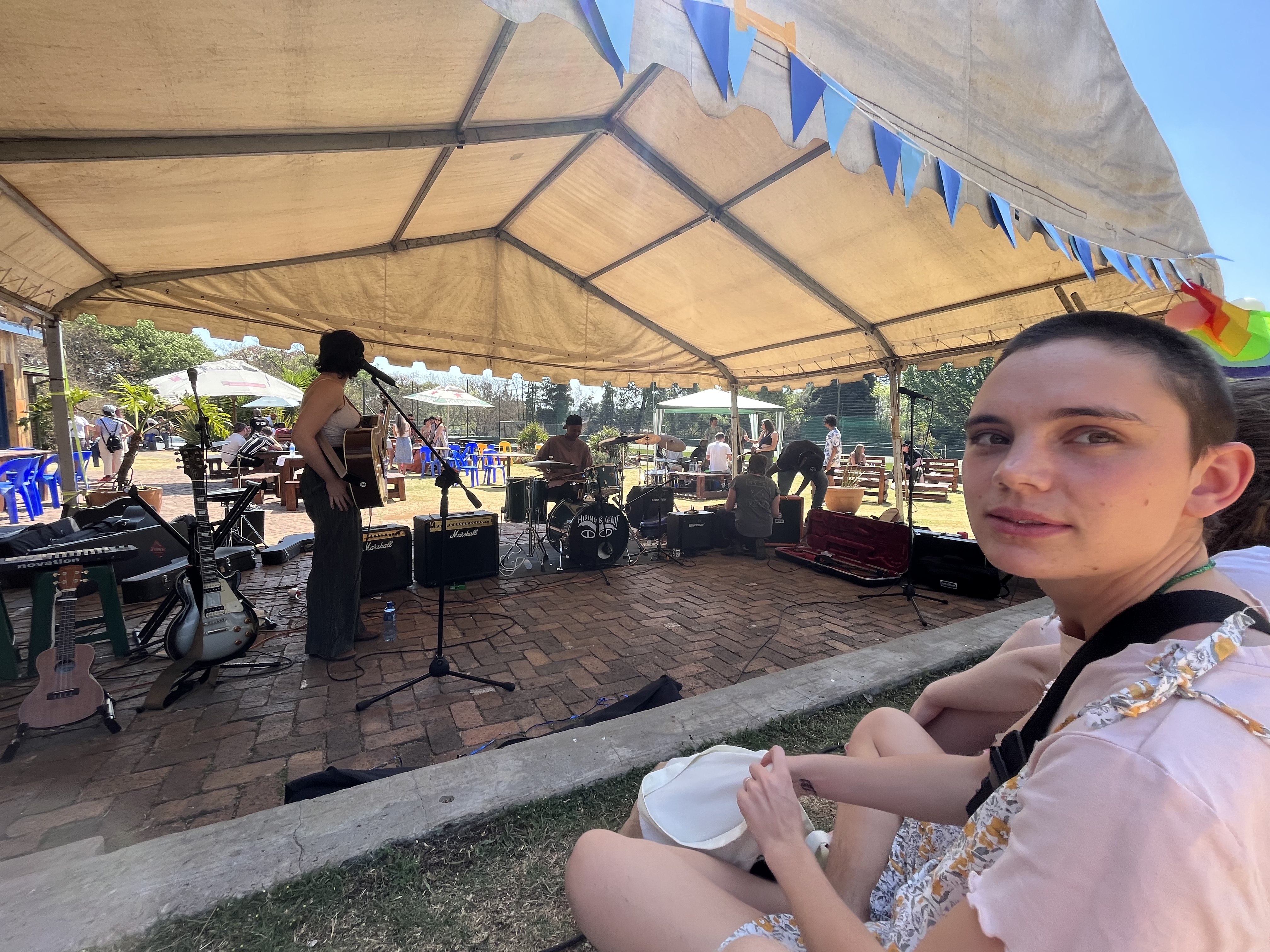 I arrive in Joburg and give Jozi Jordan a big hug and a kiss. Her new buzz cut is beautiful and her hairline is exceptional. A quick lunch and then we head over to āHowzitā by Picnic and Thrift to watch some live bands in the sun. Kate is coming on and she plays a beautiful set. We sit right in the front row and lose ourselves - itās been so long since Iāve watched live music; how Iāve missed it.
