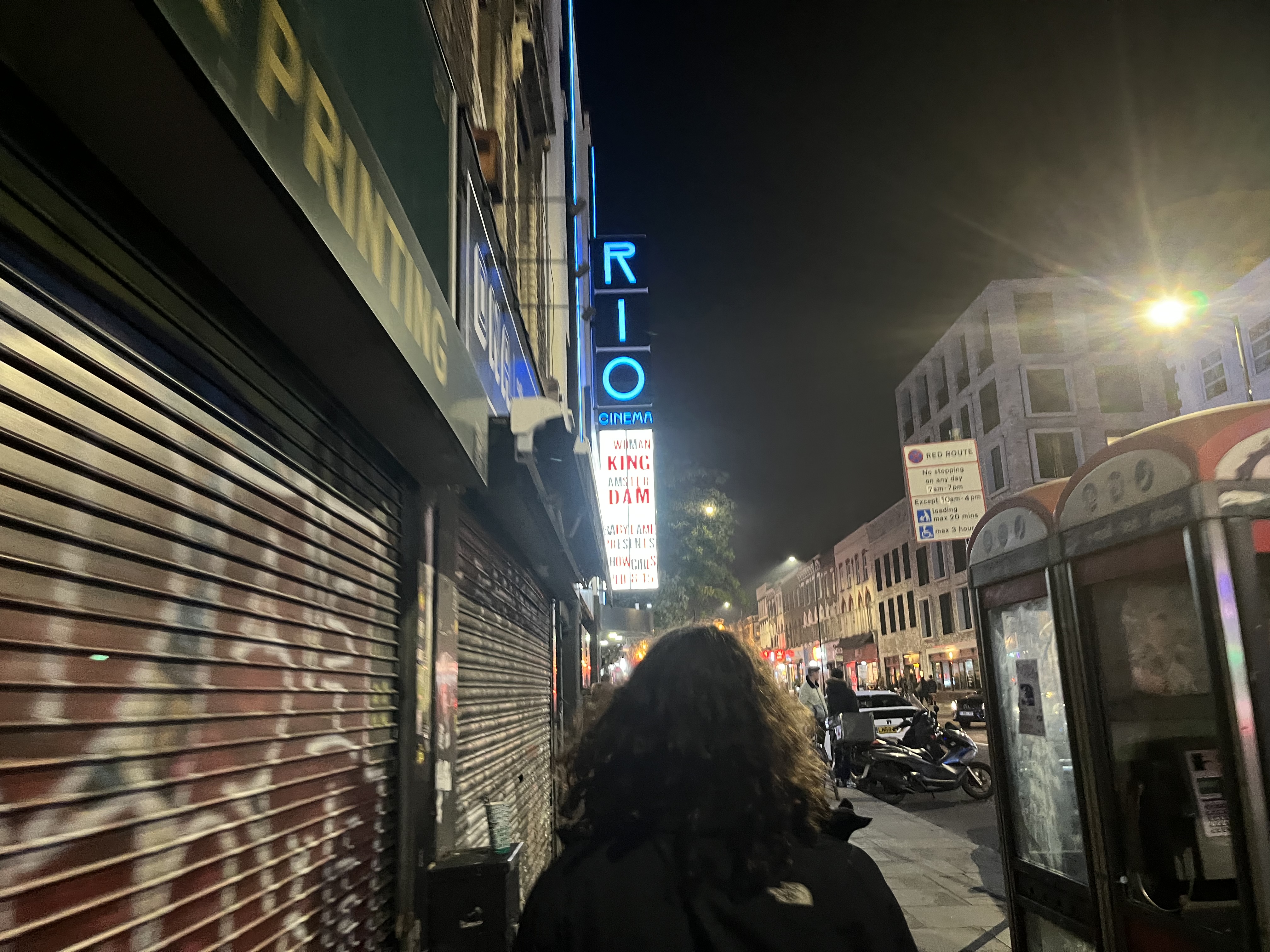 We’re feeling full and have some time to kill before our movie so we walk some laps through the cold streets of Saturday night London. Scenes of every possible situation play out before us and we walk through them as if detached somehow. We grab a snack for the movie and then it’s time to go to the RIO cinema.