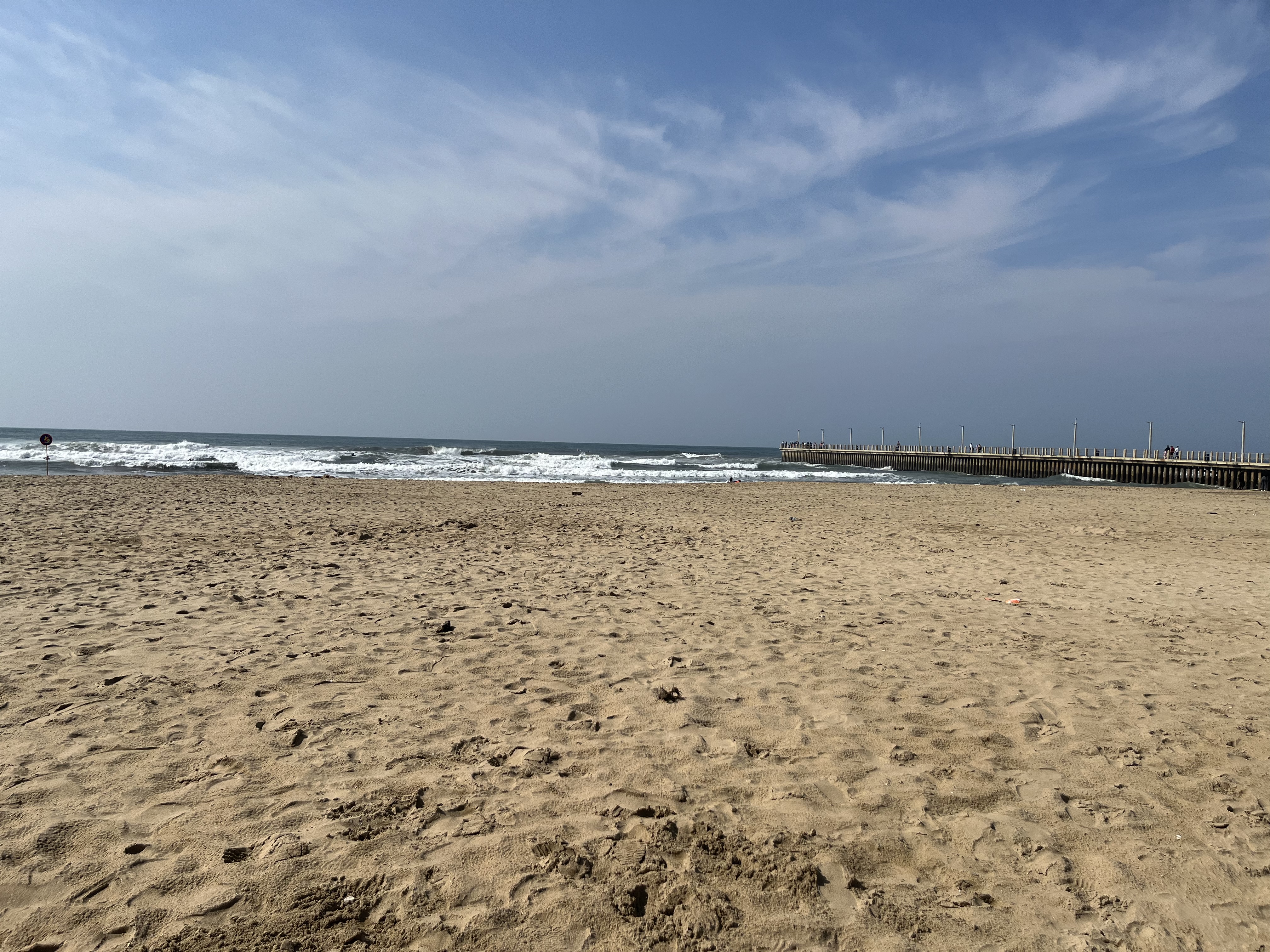 Iām on the road and driving to Durban. Jess has pointed out that there should be waves at the piers with this east swell and Iād love to surf there again. When I arrive there is some swell in the bay and the wind is offshore. I park off and take a walk down the promenade to investigate further.