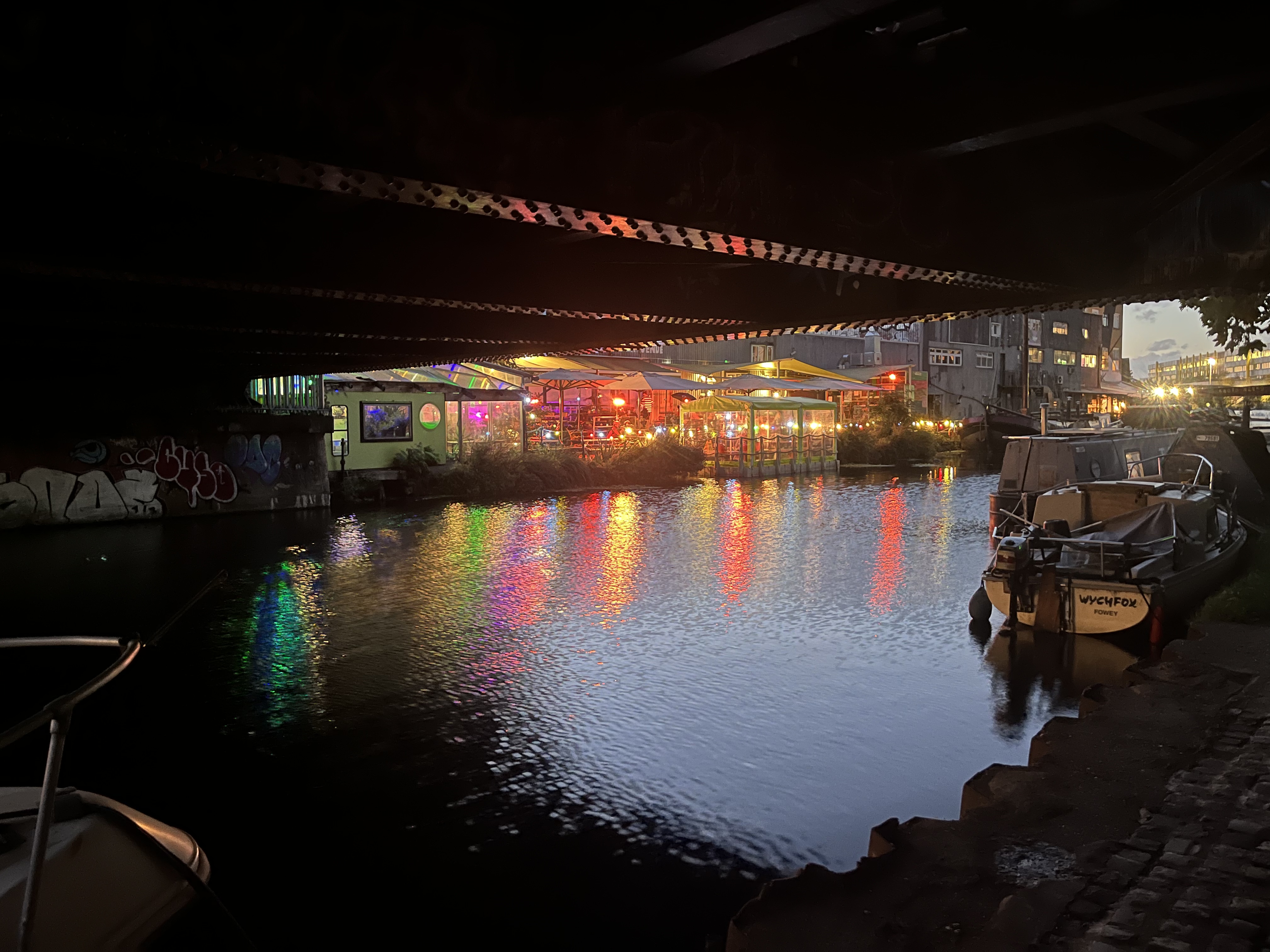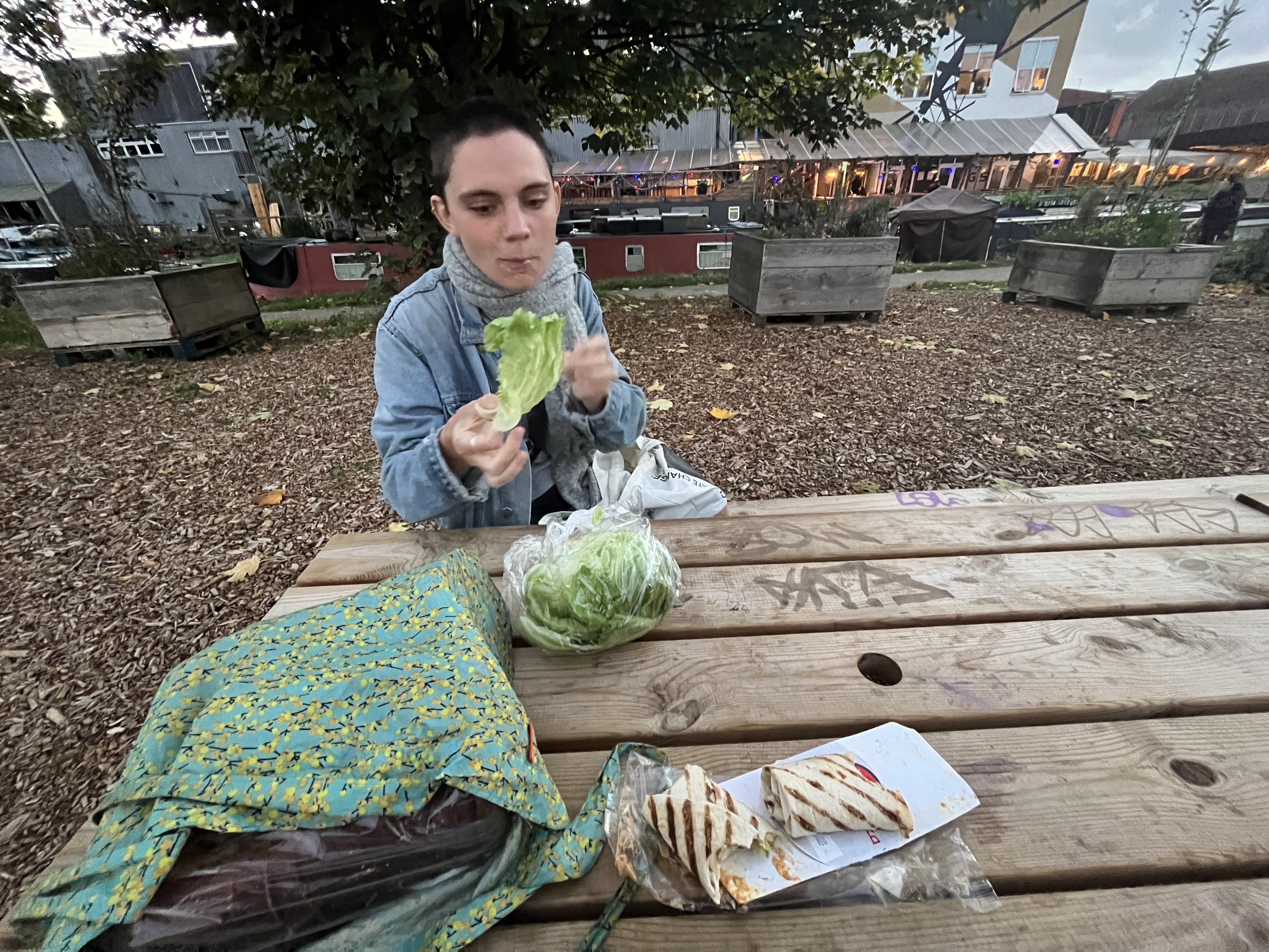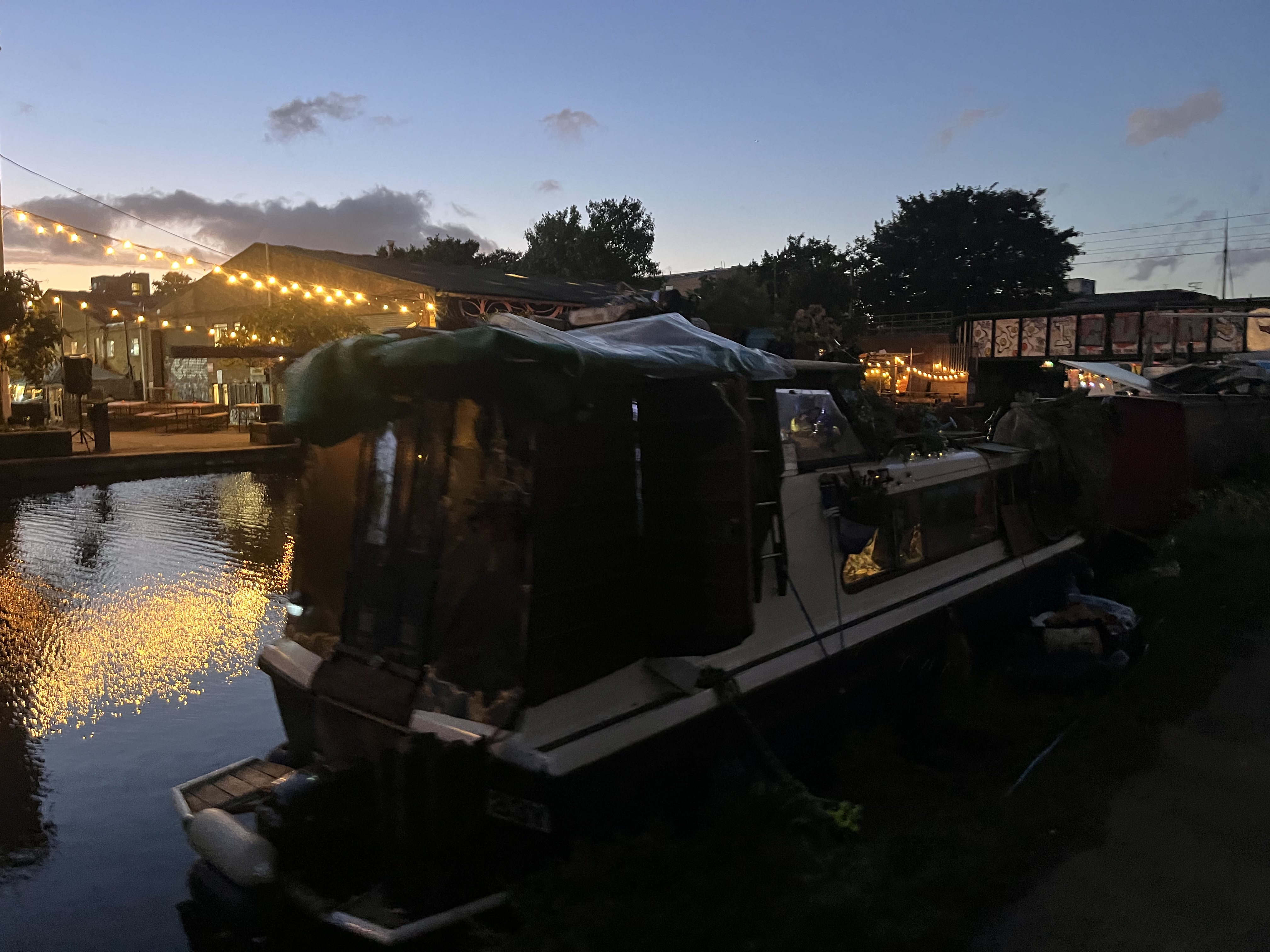 We find our way to a Sainsbury’s shop and buy a small collection of groceries as well as a tika chiken wrap and iceberg lettuce. I find a little Belgian chocolate with salt and caramel for a well-done-for-getting-to-London treat. We wonder down the canals, enamoured by the barges lining the banks that people call home. We find a bench and eat our makeshift dinner watching the sun set.
