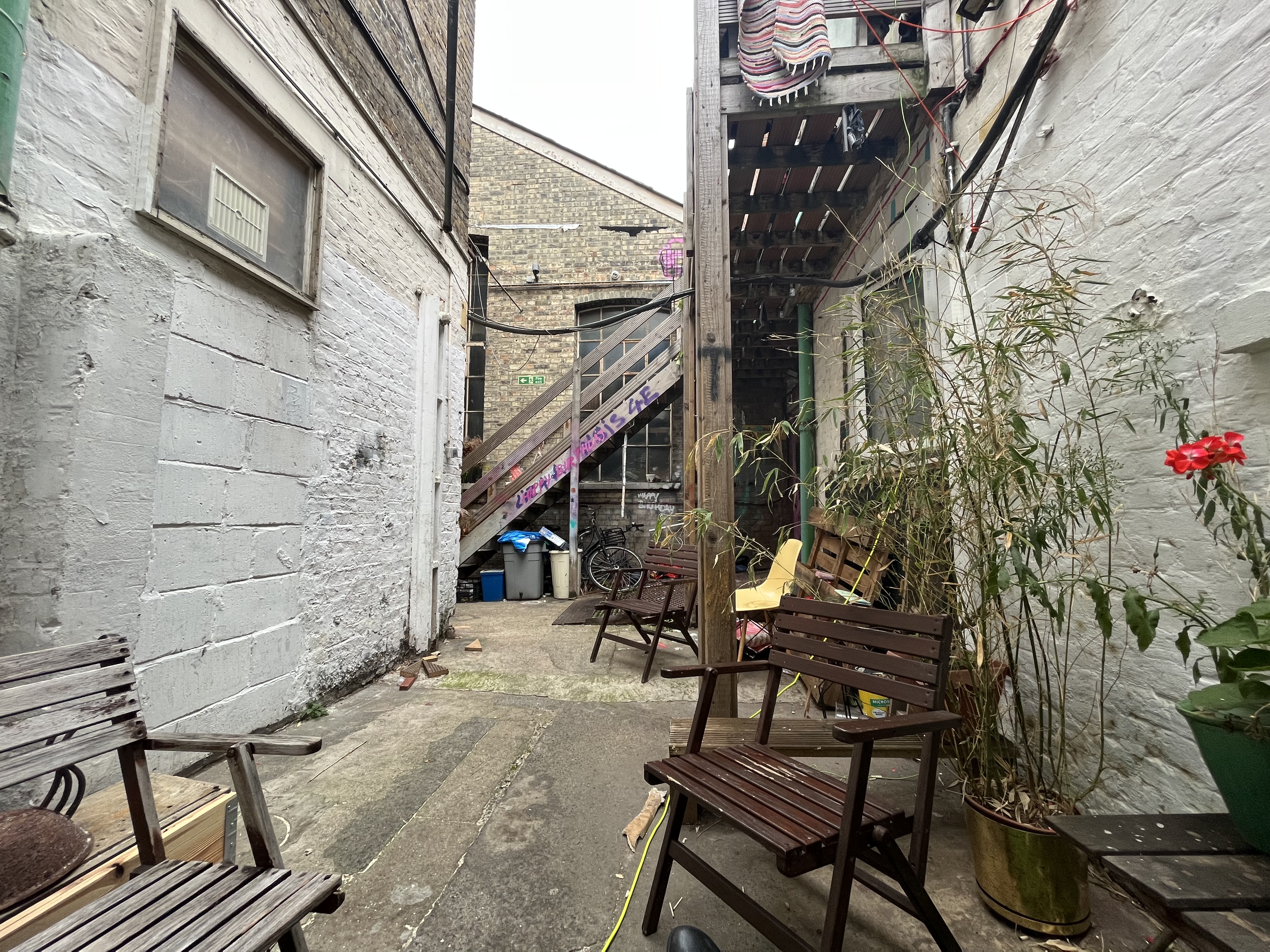 It’s a short walk to our destination that is Mich Burn’s house. We cross a canal and enter a wonderful part of Hackney that is a mixture of gentrified apartment blocks, bars, restaurants and graffiti on the walls. A narrow street takes us to number 22.