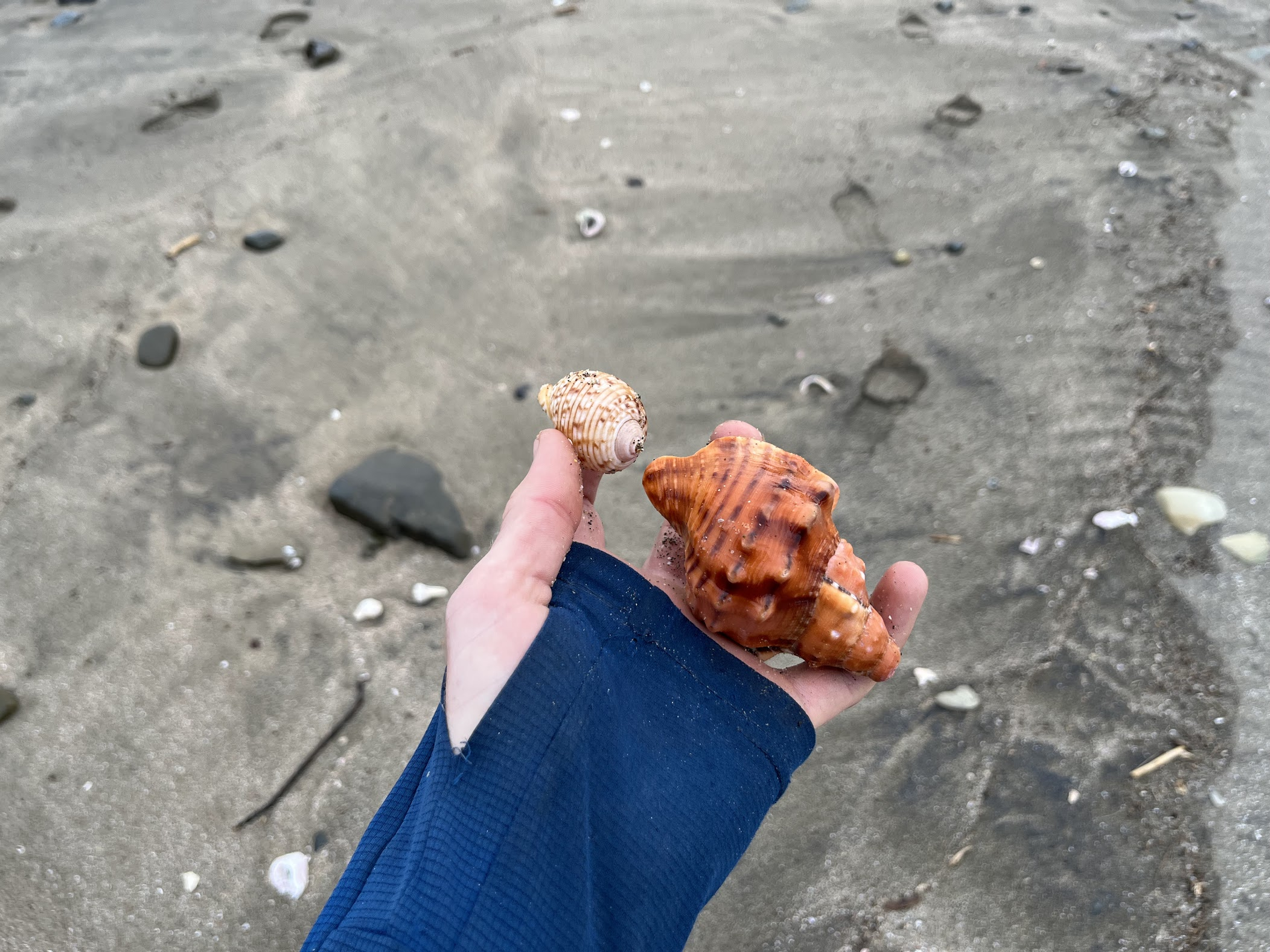 We get quite involved with skimming stones in the sea after finding some perfect rocks along the beach. Iāve been observing the larger views for the majority of the trip up until now and decide to look for the small things. Shells litter the beach and I begin collecting. A game organically appears to me call ātwo shellsā. The rules are simple: you may carry only two shells at a time, if you find a nice shell you can replace one of the two shells that youāre carrying. Hours pass and Iām left with two beautiful crab homes at the end of it.