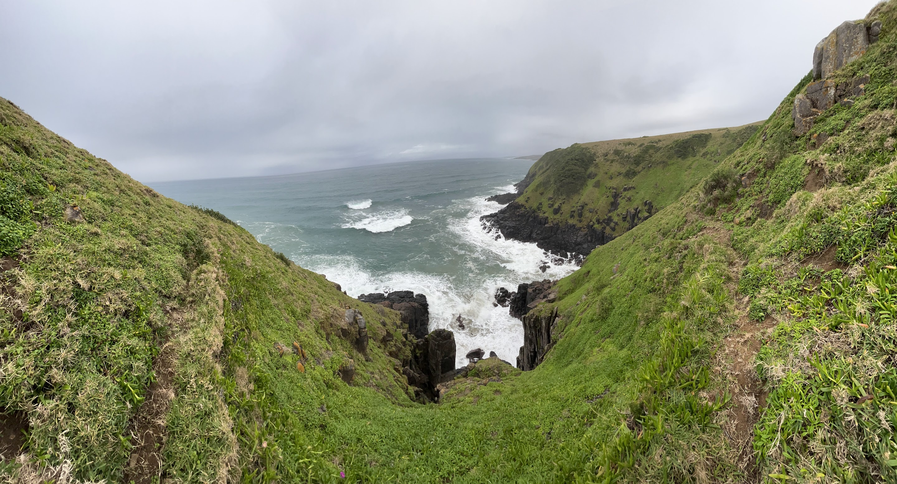 Itās quite surprising to see how the landscape seems to revert back so quickly to the grassy hills and cliffs falling into the sea again. It reminds us of the landscape that we left in Port St Johns.