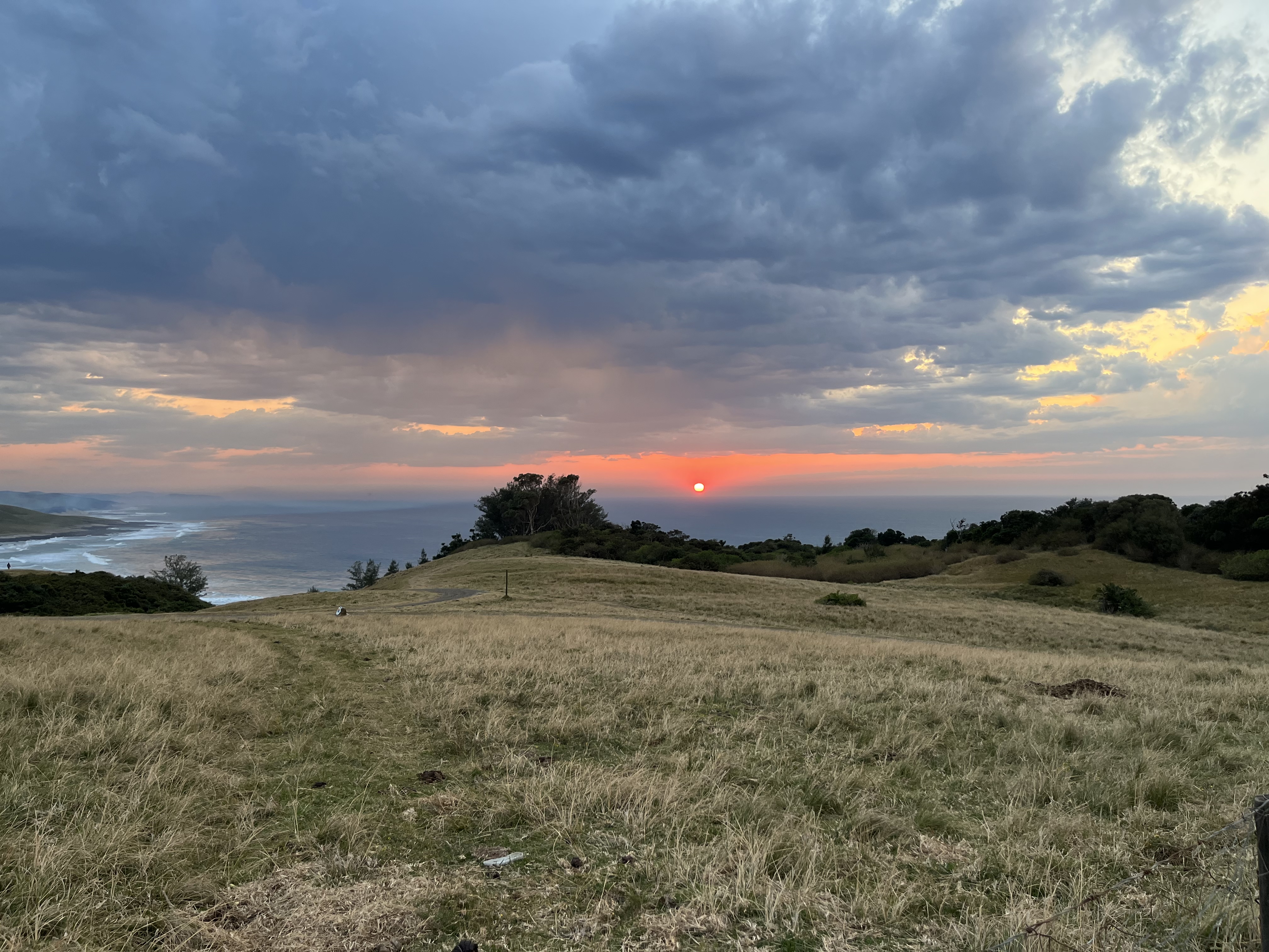 I wake up to see the sunrise and check the waves. It’s blood orange and moody. I make a coffee and oats in a full kitchen. The Richard’s Bay crew are upset “skunked again - the waves are small” they say. Hayley sits at the table with a coffee and we chat - she used to work at Aerobotics and we have some mutual friends. We take a walk down to the point to watch the waves.