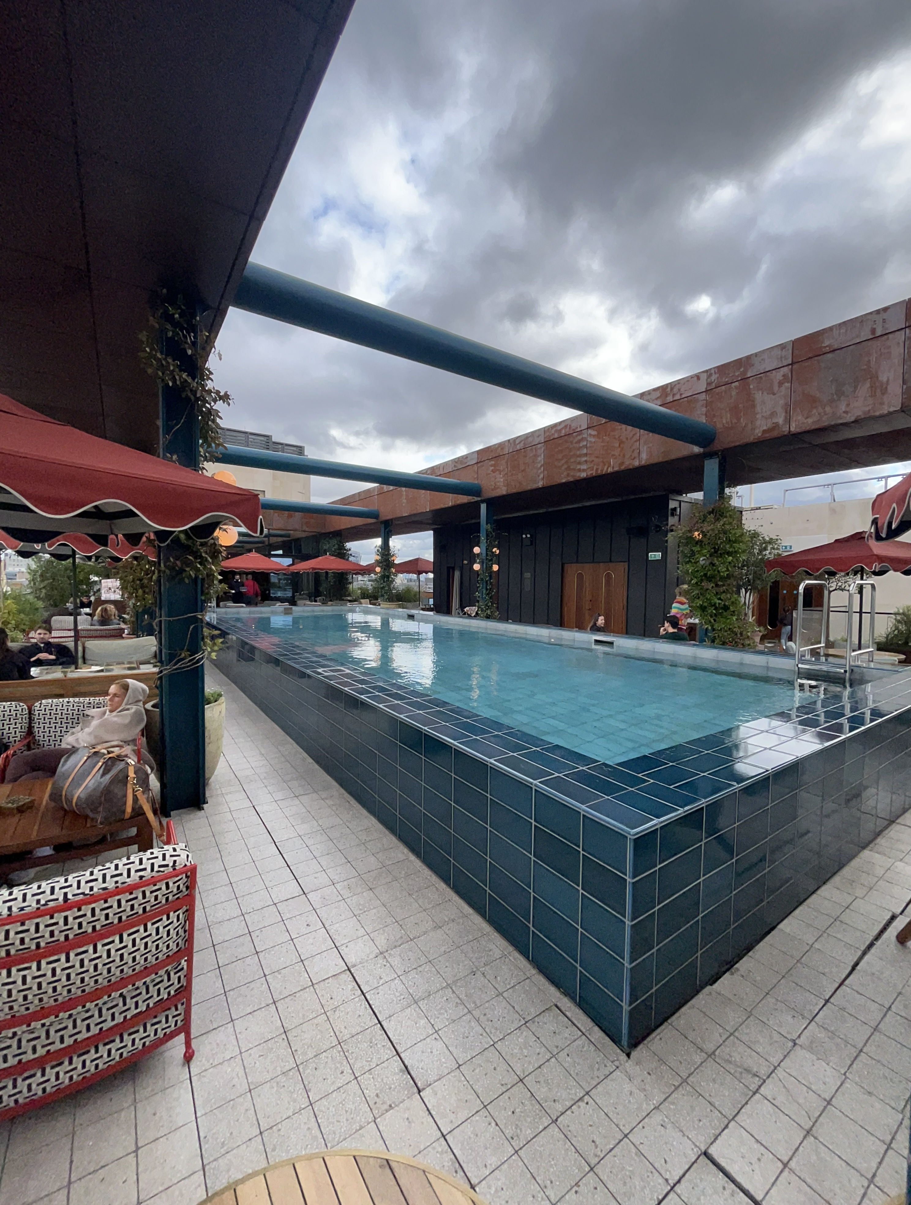 We pull up to the Soho House of which Kayte is a member and head to the top floor. There is a rooftop restaurant, pool and garden. We order pizzas and some drinks and have a wonderful conversation about parenting, mental health and responsibility. No photos allowed as there are celebs.