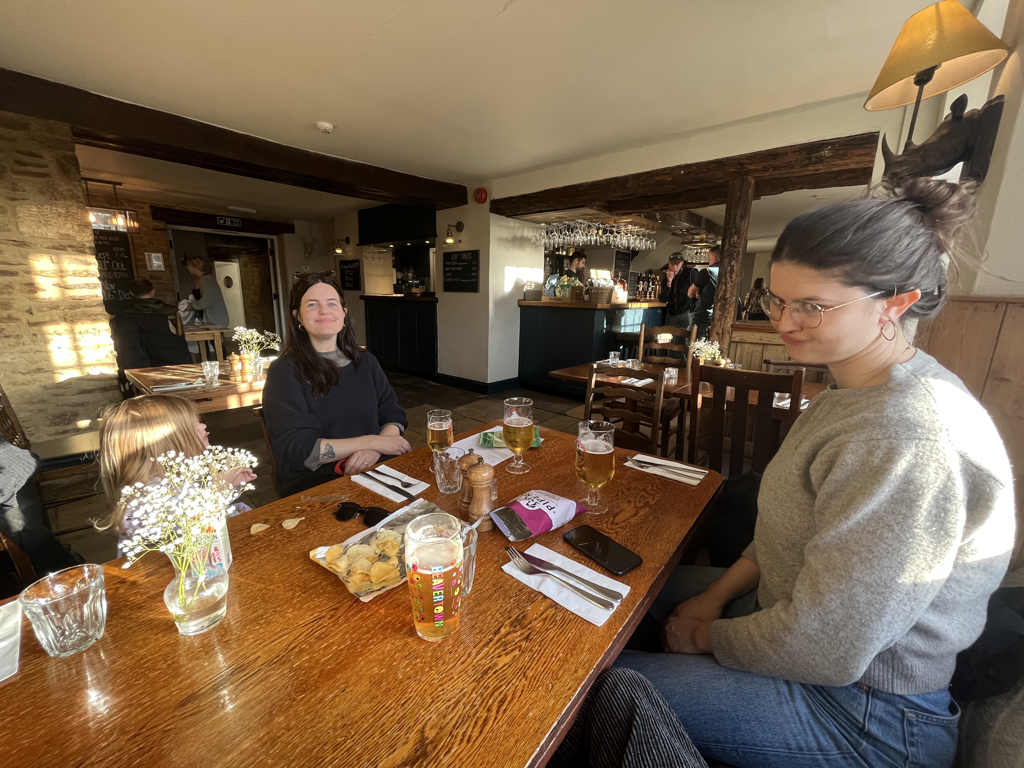 We head back along the road we came and go for a beer at The Trout - where Kate and James had their wedding. This is my first pub experience in the UK and I’m relieved. I ask for something crisp and fruity and James makes a great choice.