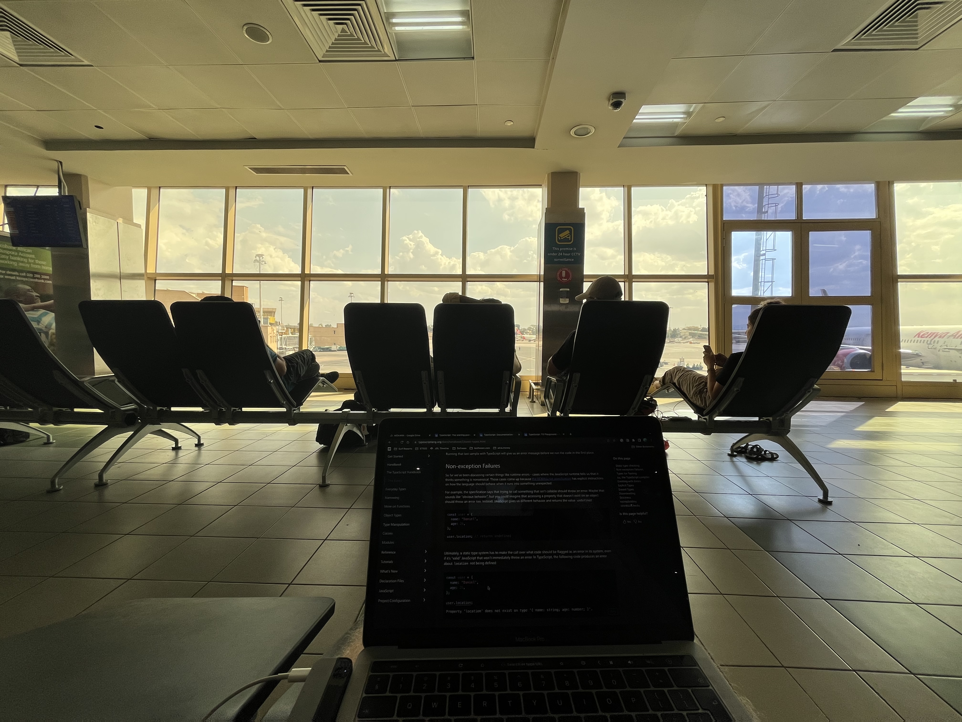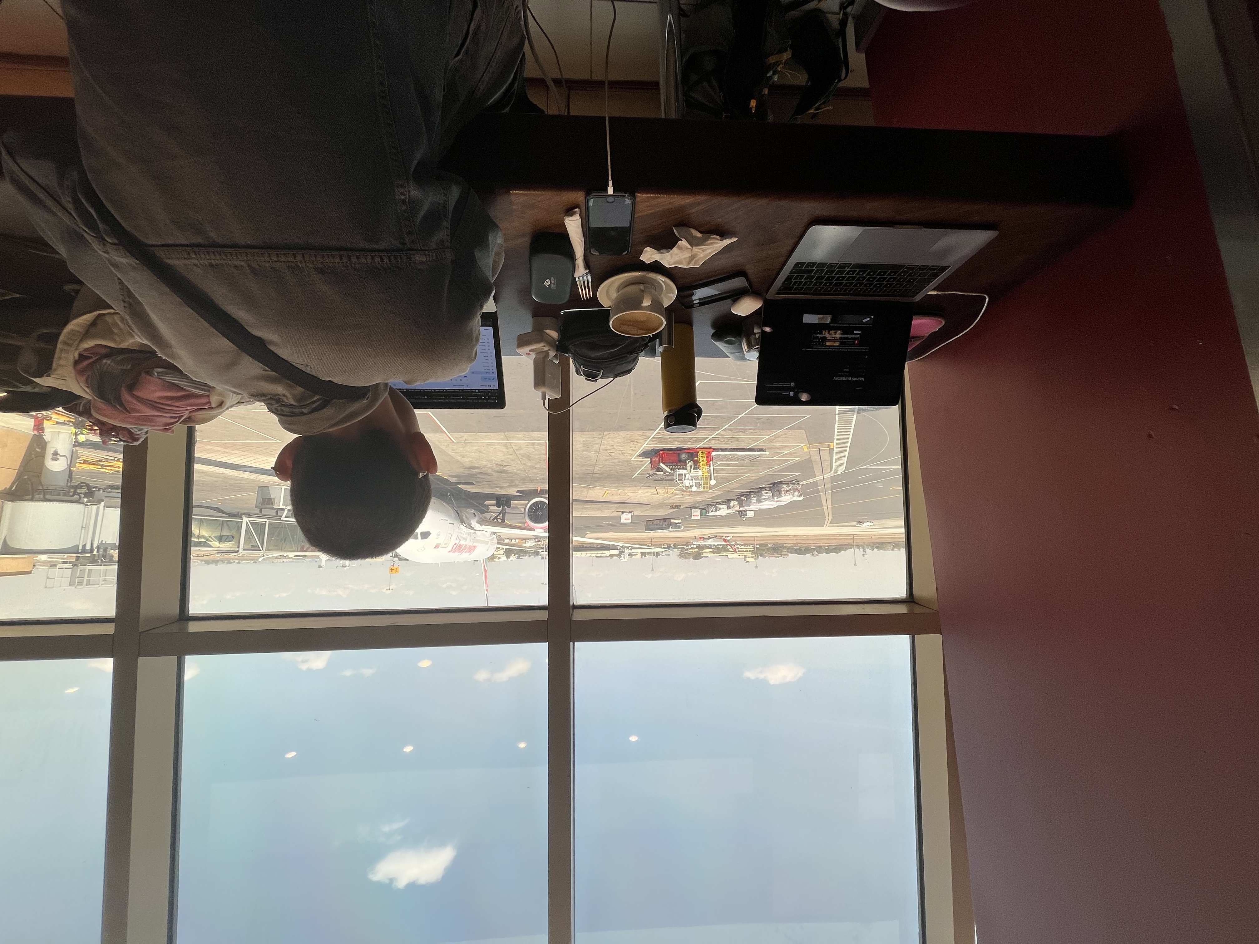 My stomach gets quite a bit worse and the really rough toilet paper of the airport doesn’t help much. There is some confusion around which gate we’re going to be leaving from.