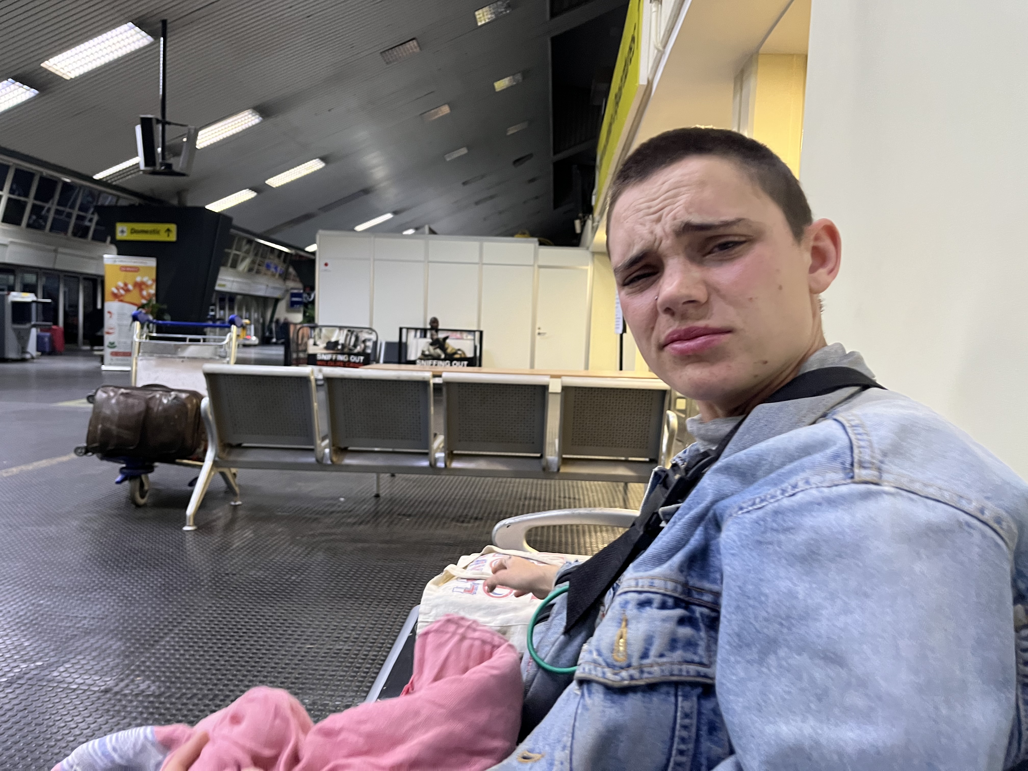 Then finally it’s time to go. I go to the toilet three million times and it looks like it’s going to persist on the plane which is less than ideal.