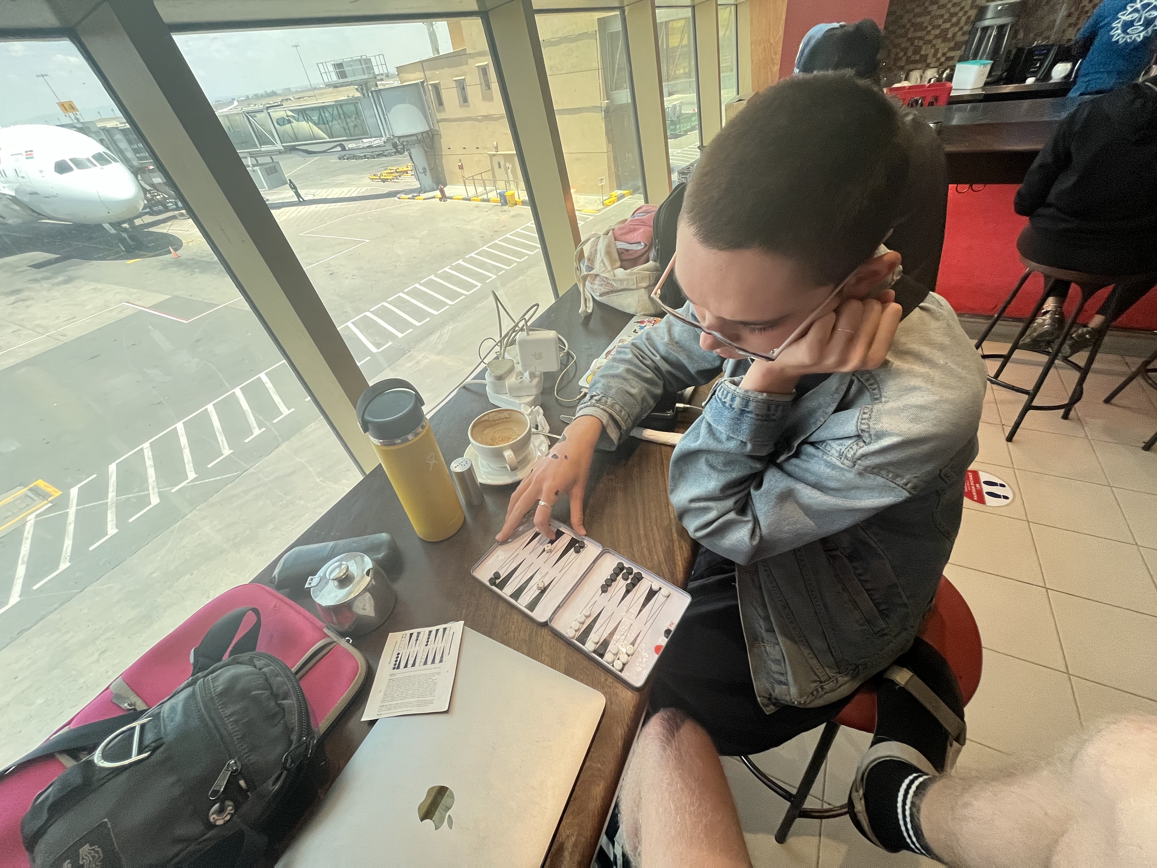 We’re sitting around bored. My stomach isn’t doing great, Jordan has a UTI and week-early period. We have realized that we both going to be going to the airplane bathroom about once an hour; and hence will be joining the mile high cry club.