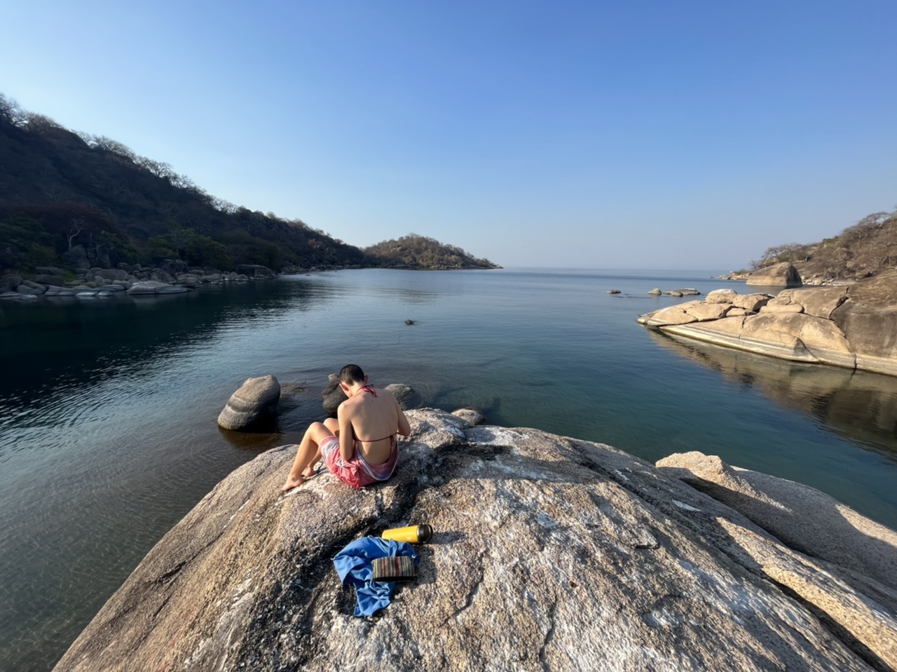 Potholes appear. Potholes that make the roads in KZN blush. It’s enjoyable but tiring driving as I weave through them with a successful dodge rate of 99%. And then we’re there! Driving down the main road of Monkey Bay; small shops and a village surround the main road. Smells of cooking, music, noises from the markets and the calls of Fish Eagles creep into our helmets. We exit the village and ride down a small dirt road to arrive in the paradise that is Mufasa Lodge.