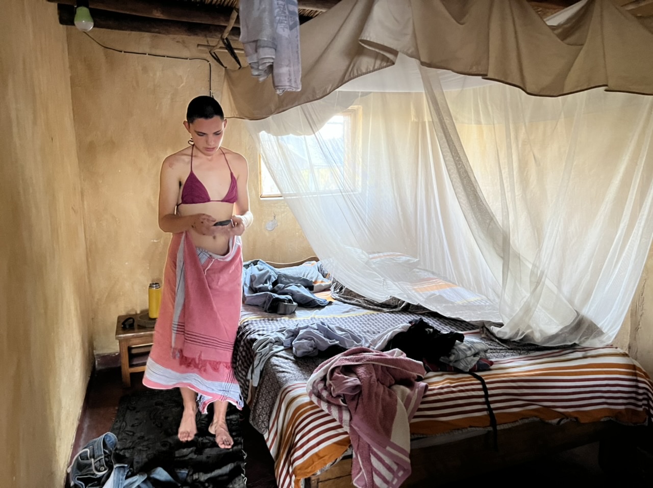 We clammer onto a rock to watch the sun set. We shake off harrowing drive and watch tropical fish flash their silver underbodies as they flit between the rocks. Dinner arrives and is delicious. We sit at a table with a funny Dutch couple and the owner of the lodge who tells some rather abrasive stories from her life out here. The dutch woman is a nurse and takes a look at us. She calls our wounds “superficial” which provides a lot of comfort.