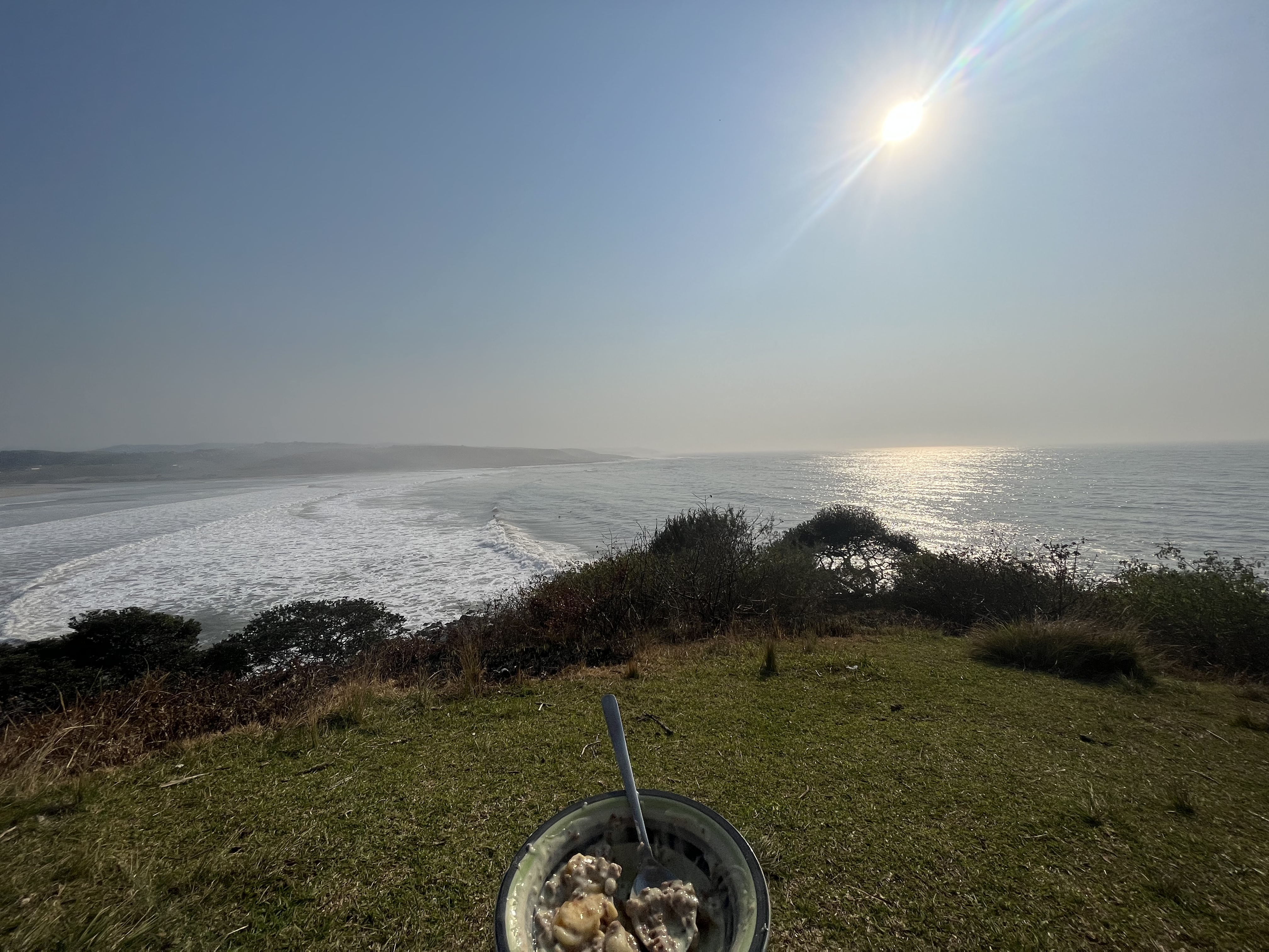 Once up I take a coffee down to the point and watch Jude, Dom and Lorenzo trade a few waves in pretty average conditions. The point is not working but they are sitting on the beach break section getting a few shorter waves. It doesn’t entice me so I opt for some reading and writing instead.