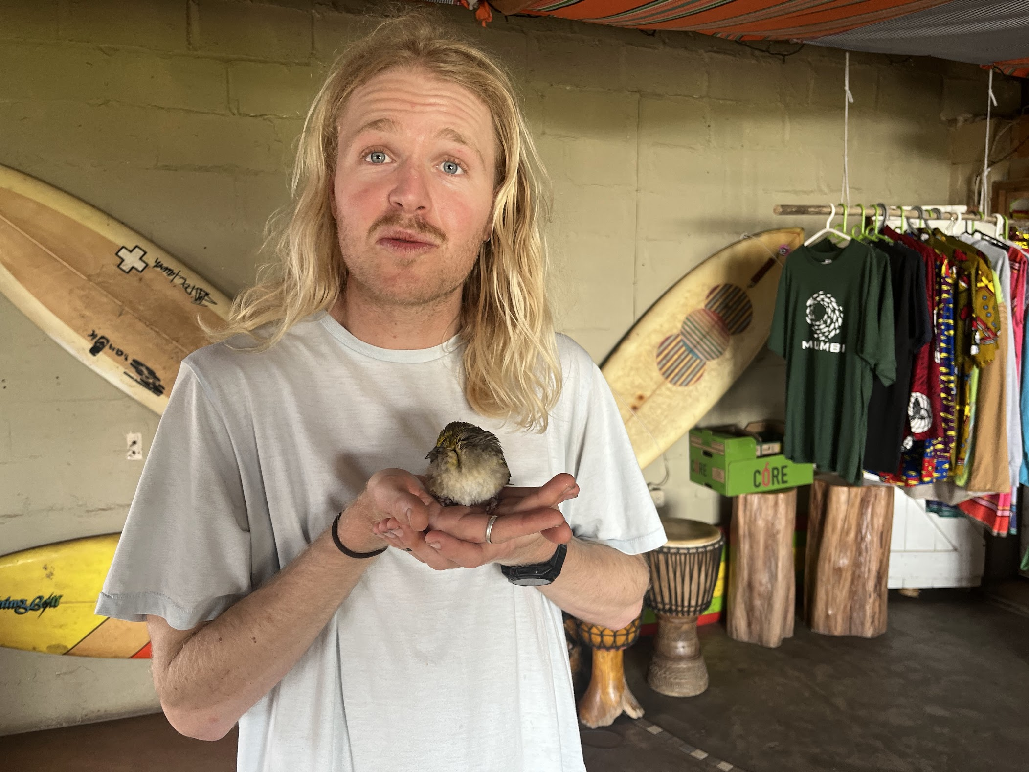 I find a small bird walking around on the grass in a daze. I take it upon myself to try and give it some life with some sugar water. It is pretty content sitting on my finger and sipping some water from time to time. I take it to a tree and it hops on - looking me in the eye with a look that is either “thank you” or something that is more inline with it accepting fate.